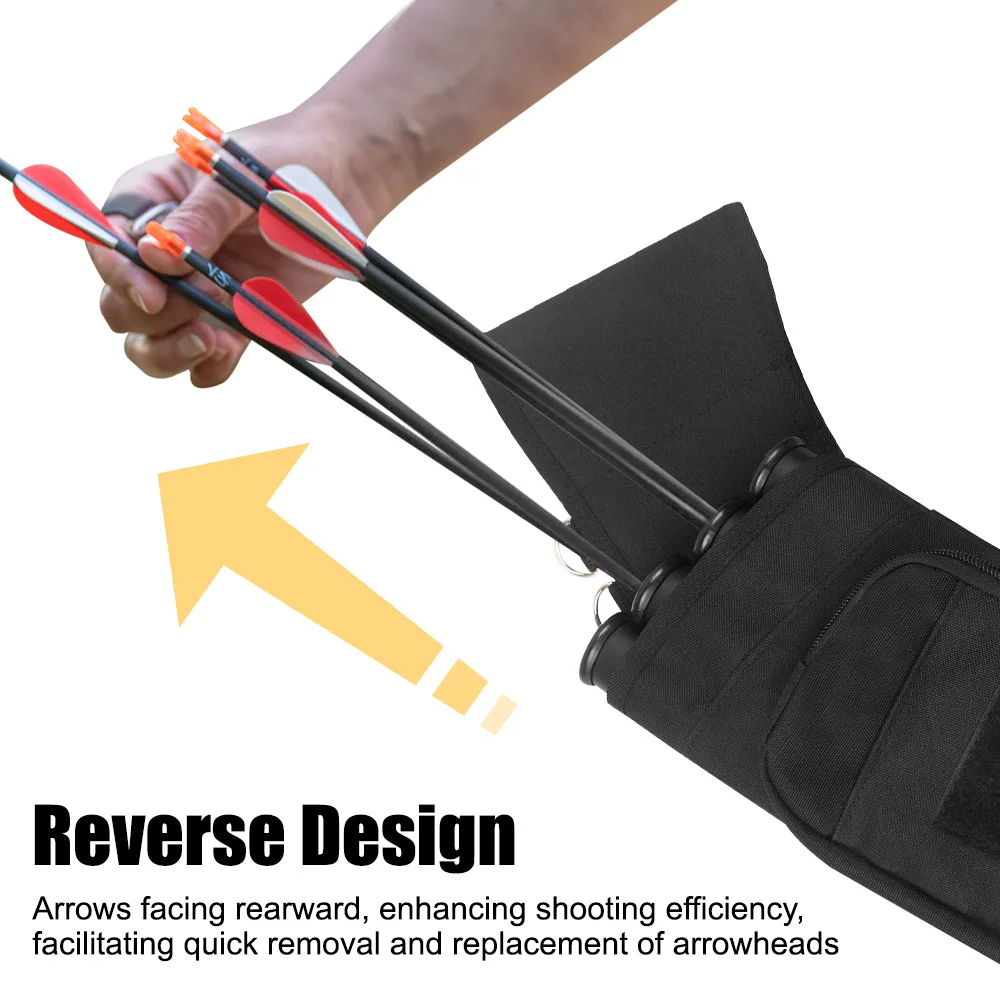 4. 【EXPERIENCIA DE USO CONVENIENTE】 El diseño inverso facilita la extracción y reemplazo de flechas, mejorando la eficiencia del disparo.Esta funda de flecha también protege mejor las puntas de los arcos compuestos, los arcos recurvos y las balsa de los daños durante el transporte.