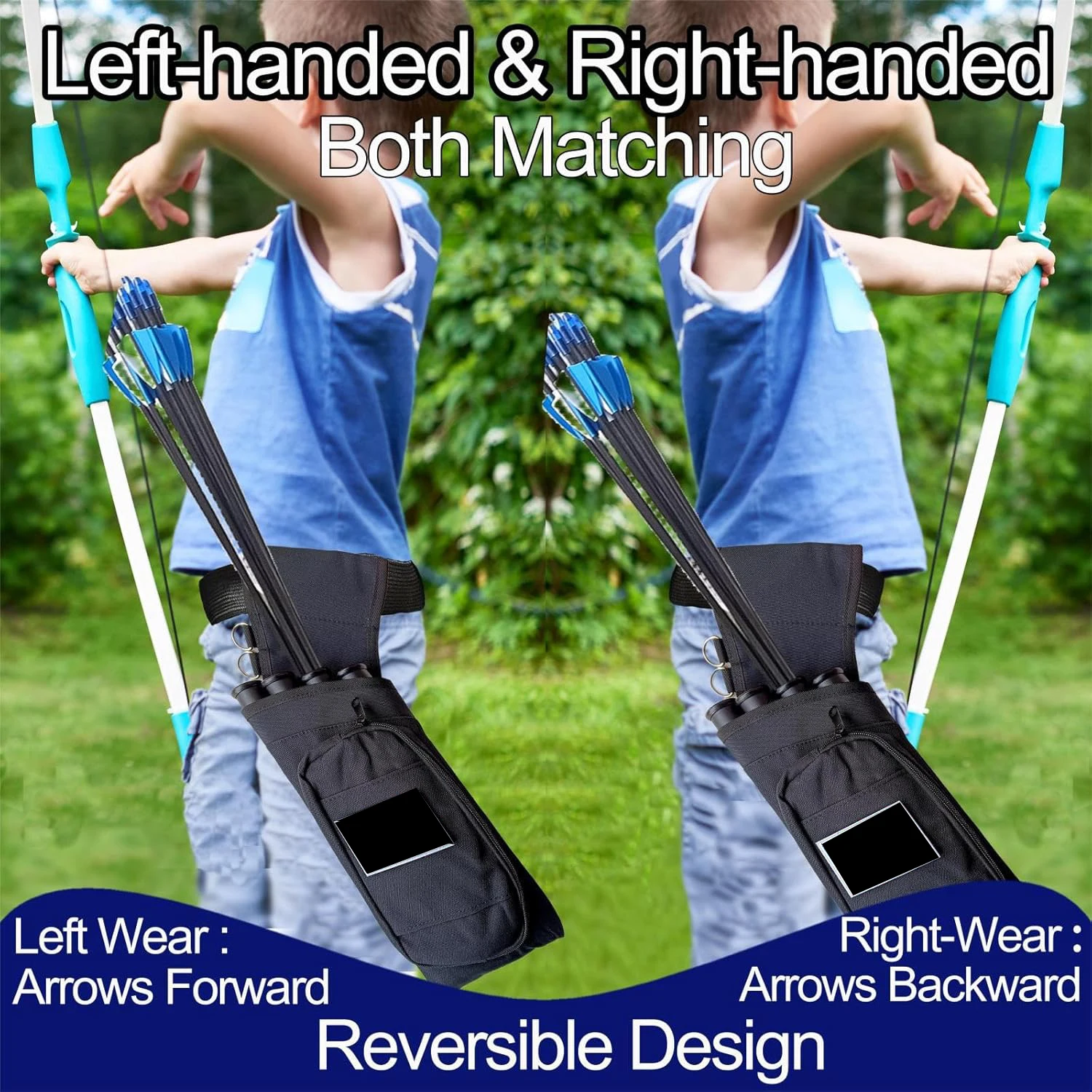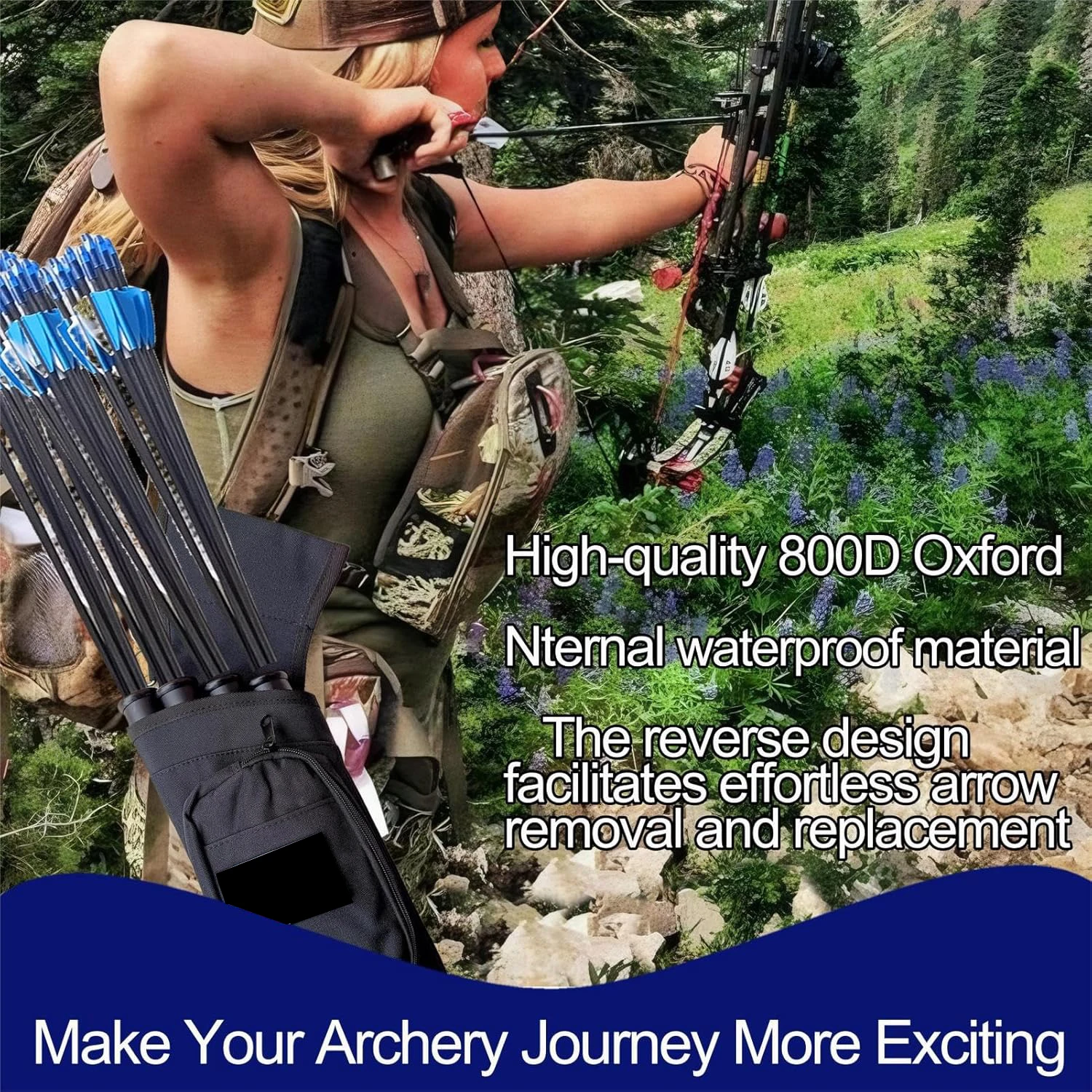 5. 【USO DERECHO - LA CARTA DE ESPALDA】 Perfectamente con el movimiento natural de tu mano dominante.DESGASTE IZQUIERDA - ARRIBA: Esta orientación está adaptada al sorteo del arquero zurdo, brindando un acceso igualmente cómodo y eficiente a sus flechas.