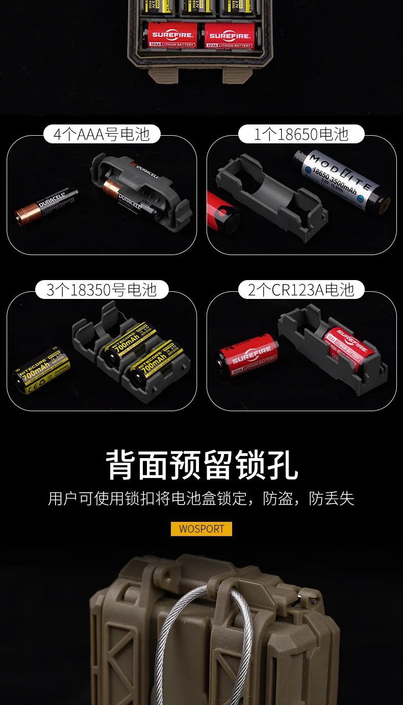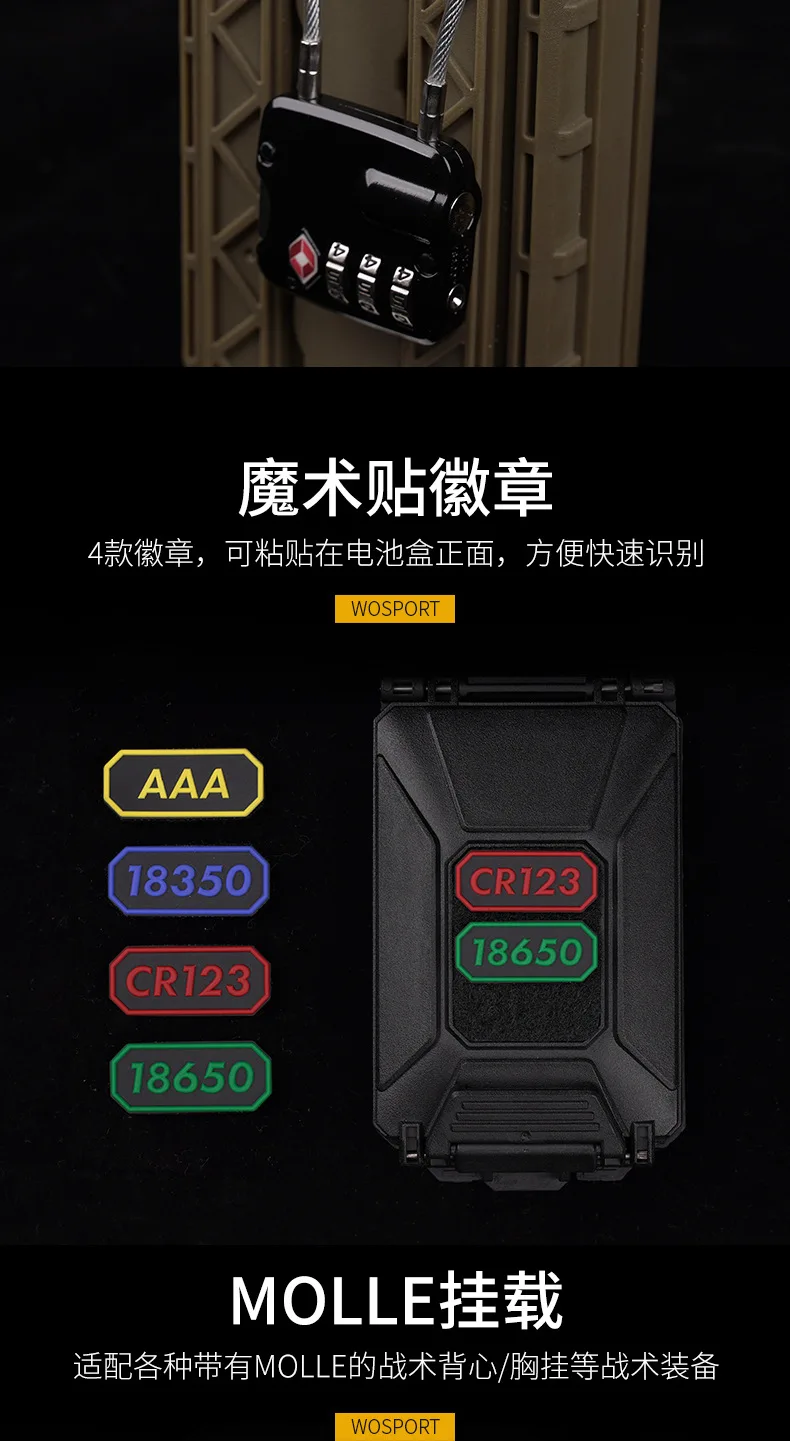 Almacenamiento de batería Molle táctico para caza, Caja impermeable CR123 portátil para/AAA/AA/18350/18650 Airsoft