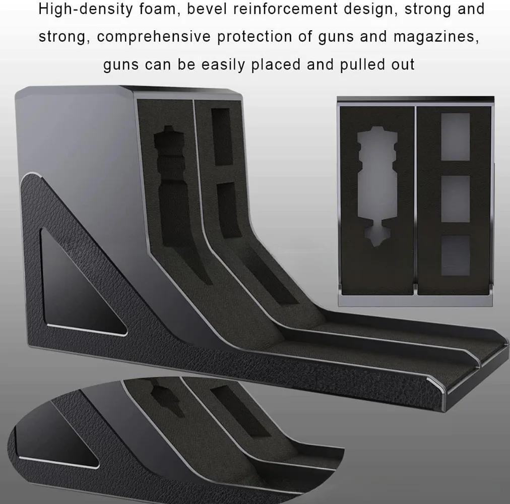 La funda protectora universal para pistola permite acomodar 2 pistolas diferentes y adaptarse a la mayoría de pistolas y revólveres.Accesorios organizadores de pistola de tamaño perfecto, organice cuidadosamente sus pistolas en el estante.