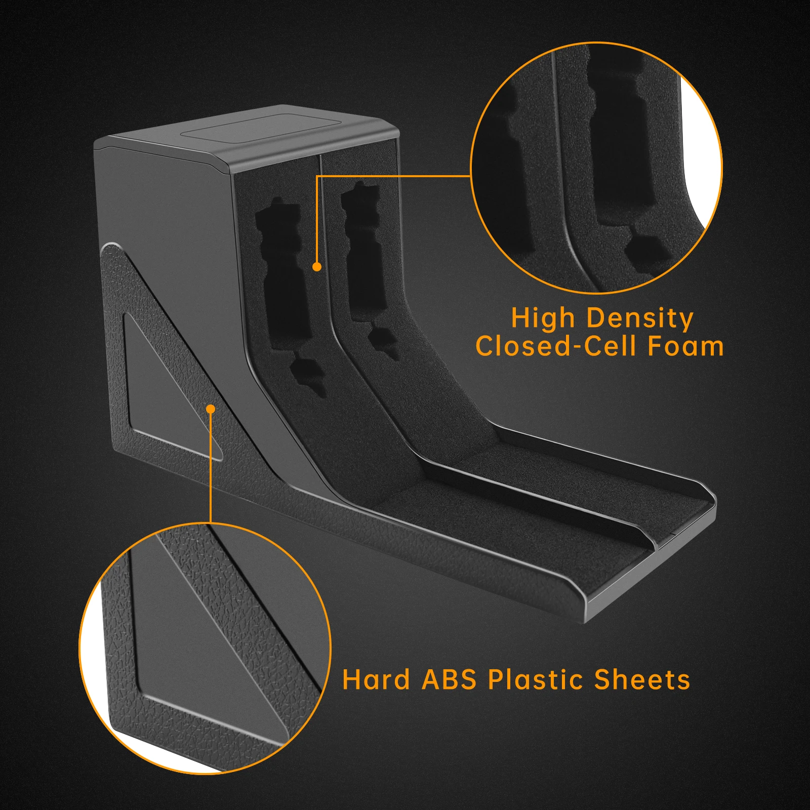 El soporte de pistola protector universal está hecho de espuma de celda cerrada y plástico ABS duro.La espuma de alta densidad proporciona un alto nivel de protección, con láminas de plástico ABS duro añadidas en las paredes exteriores, lo suficientemente fuertes y duraderas como para soportar prácticamente cualquier tamaño de pistola.