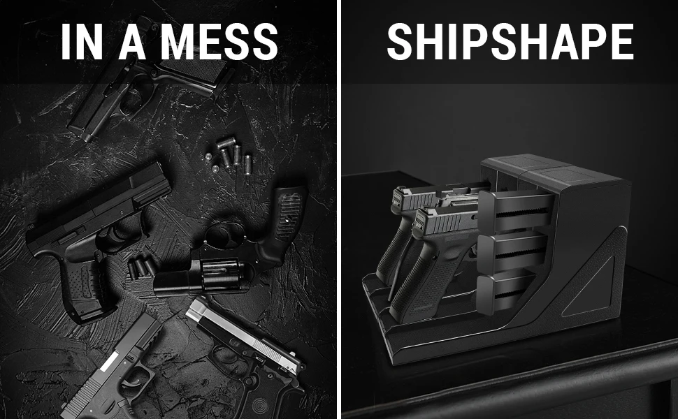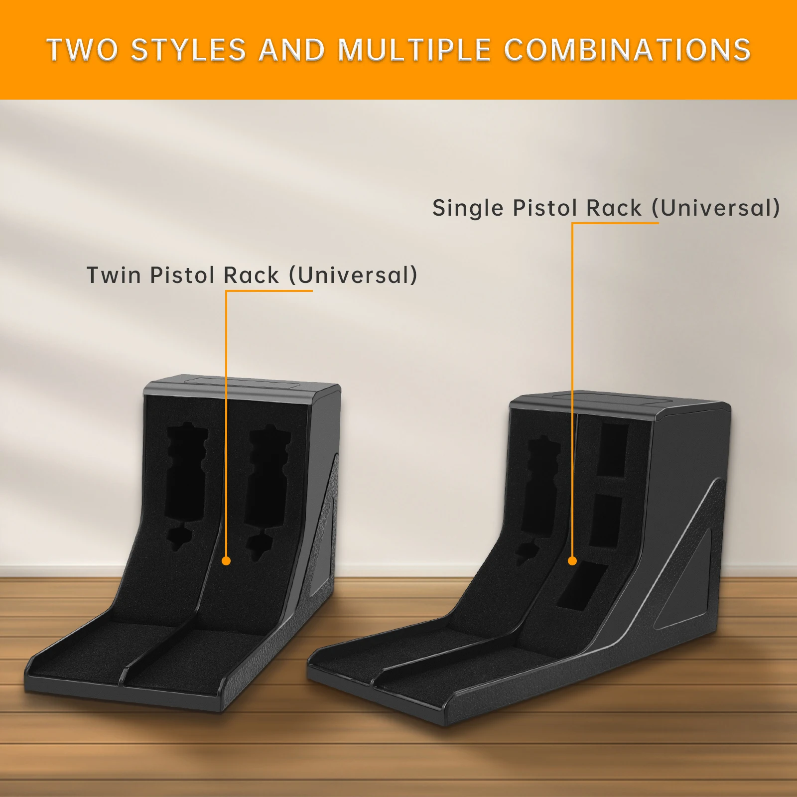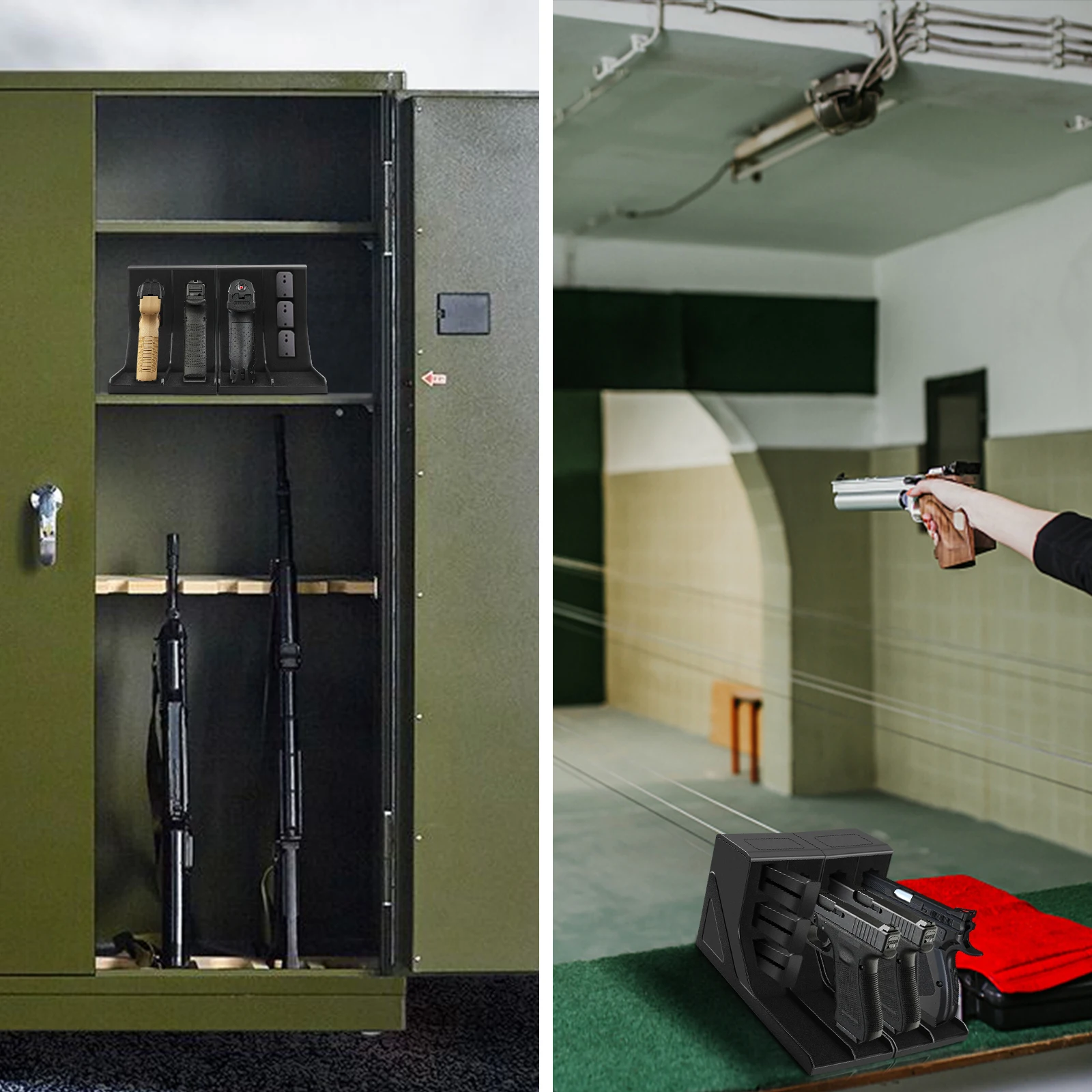 Este soporte modular para armas viene con cinta adhesiva de doble cara, se puede colocar sobre la mesa del recibidor, la habitación y se puede colocar perfectamente en cajas fuertes y gabinetes sin ocupar mucho espacio.