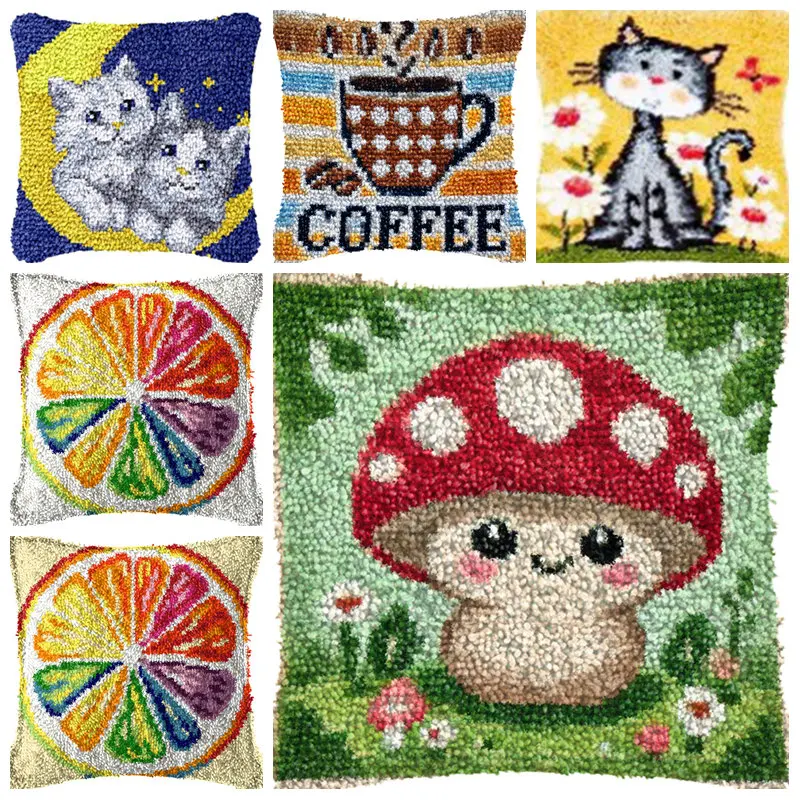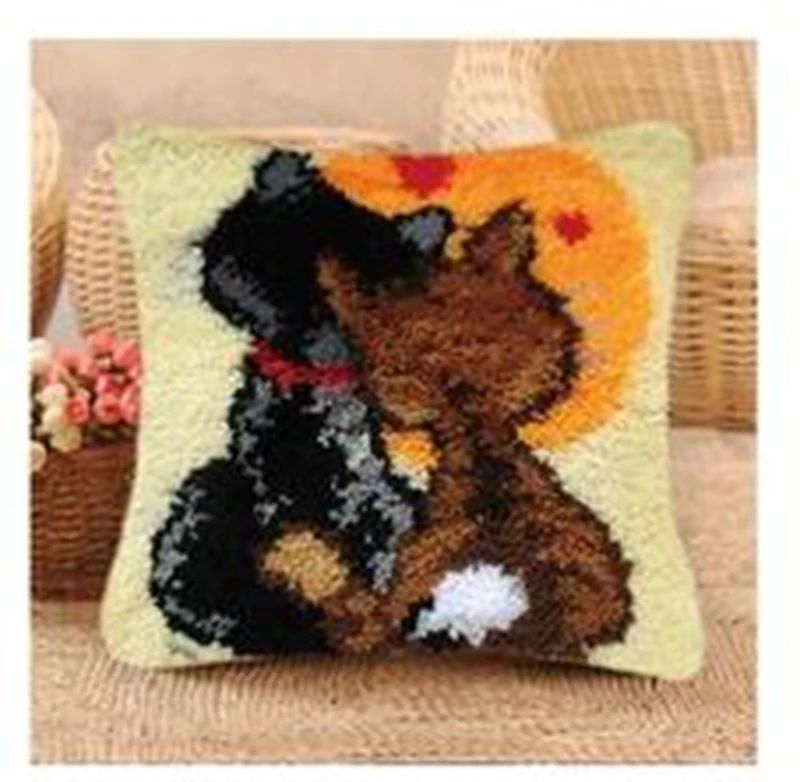 Almohada bordada de dibujos animados, Kit de gancho de pestillo Knooppakket, almohada, Kit de punto de cruz, almohadas DIY con bordado de alfombras
