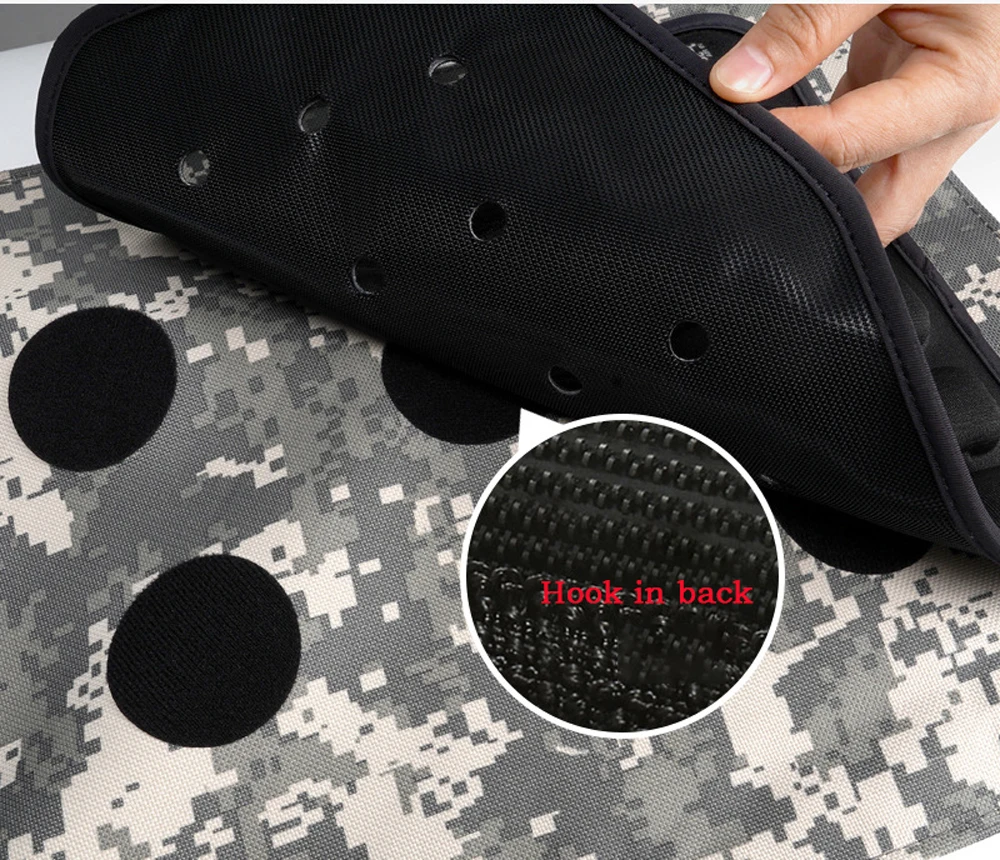 Gancho en la parte posterior para acoplar con varios chalecos tácticos