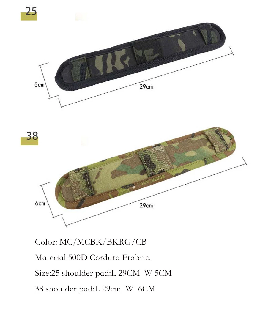 Mochila táctica para exteriores, almohadilla para el hombro, almohadilla para el hombro táctica extraíble para correa ancha de 25mm y 38mm
