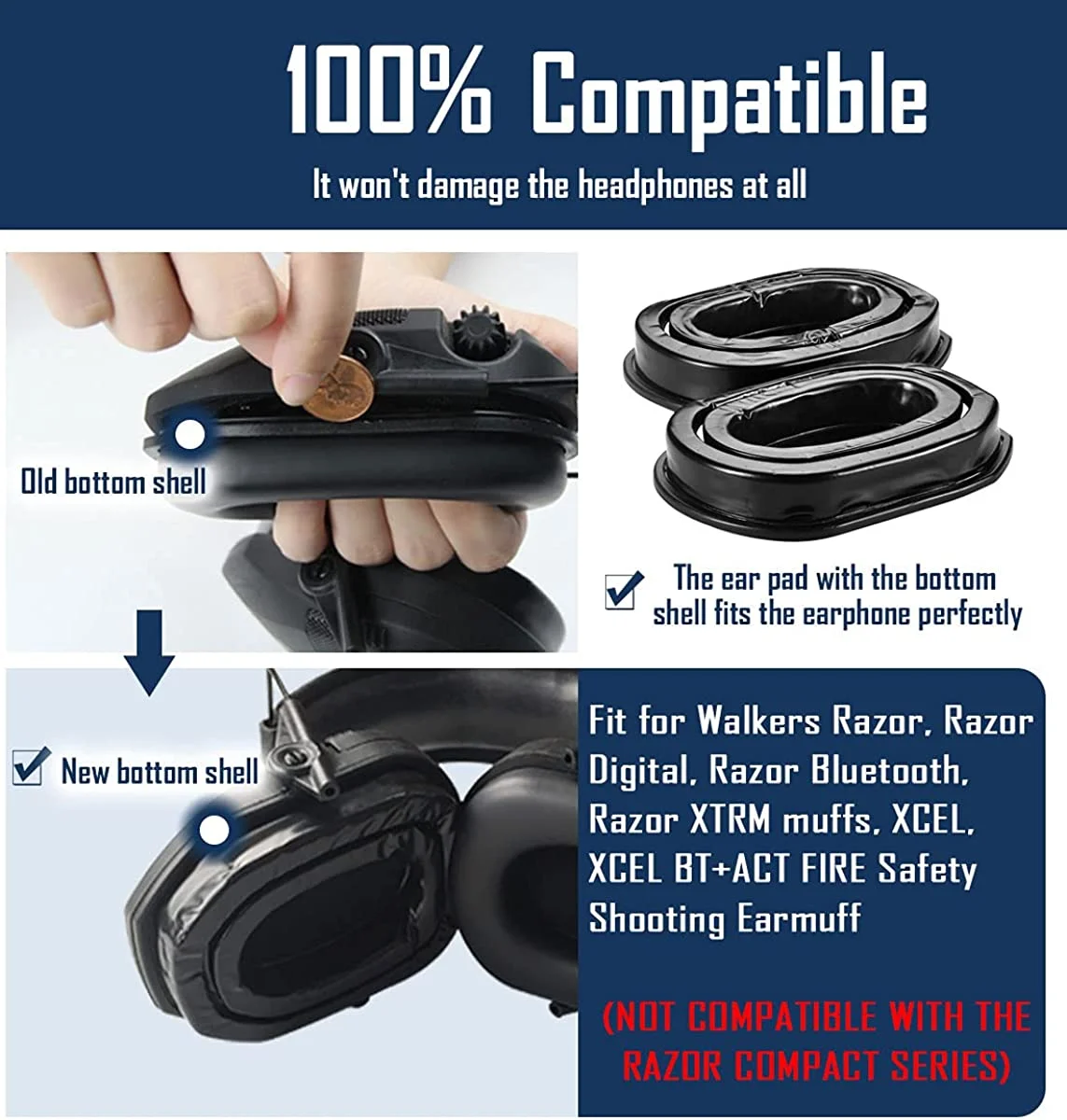 Ajuste perfecto para Walkers Razor, Razor Bluetooth, Razor Digital, orejeras Razor XTRM, XCEL, XCEL BT, orejeras de seguridad ACT FIRE.(No compatible con la serie Razor Compact)