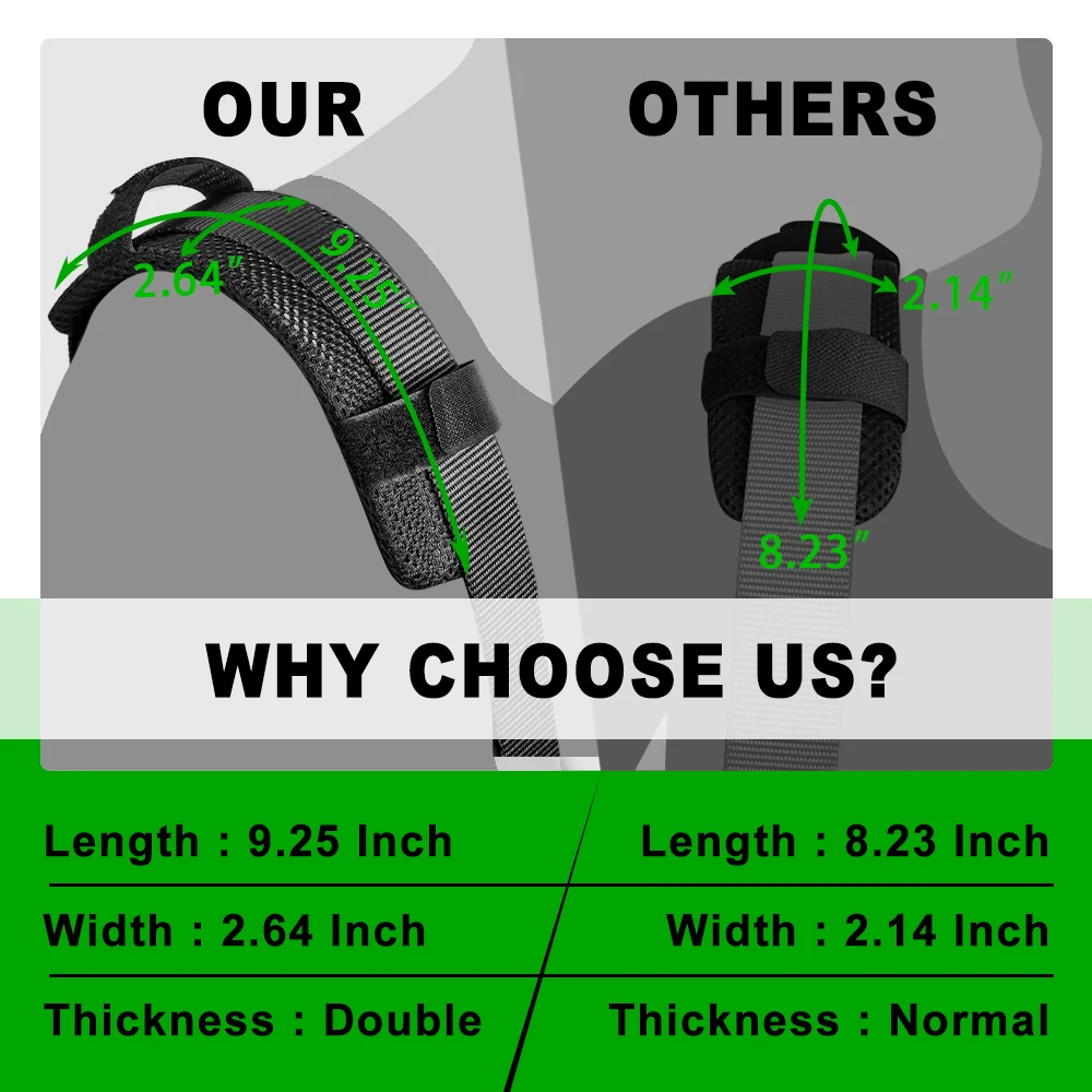 2.Almohadilla suave y cómoda: la hombrera tiene las características de suavidad, buena recuperación, transpirabilidad y absorción de impactos, lo que puede hacerte más relajado y cómodo durante actividades de carga de peso a largo plazo al aire libre.Tejido suave y transpirable, no hay necesidad de preocuparse de que la hombrera se resbale.