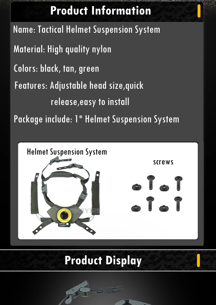 ●Adecuado para comodidad y estabilidad modificadas de varios cascos tácticos, mejora la comodidad, adecuado para actualizar el sistema de suspensión del casco Wendy, instalación simple y conveniente.