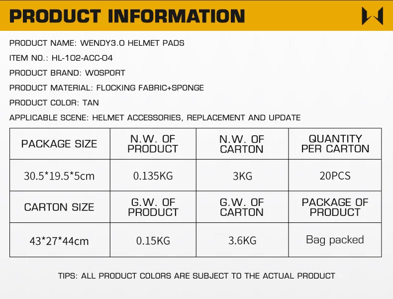 Nombre del producto: Almohadillas para casco Wendy3.0