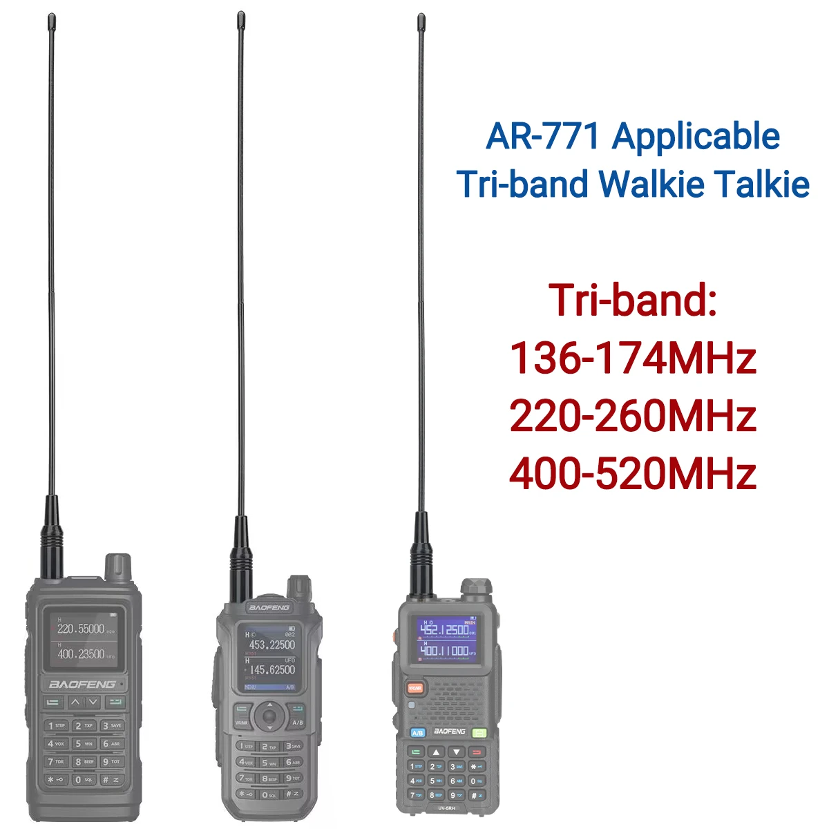 Antena de tribanda muy bonita para BAOFENG y otros modelos con 200 Mhz incluida.