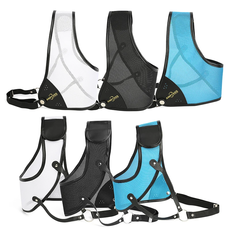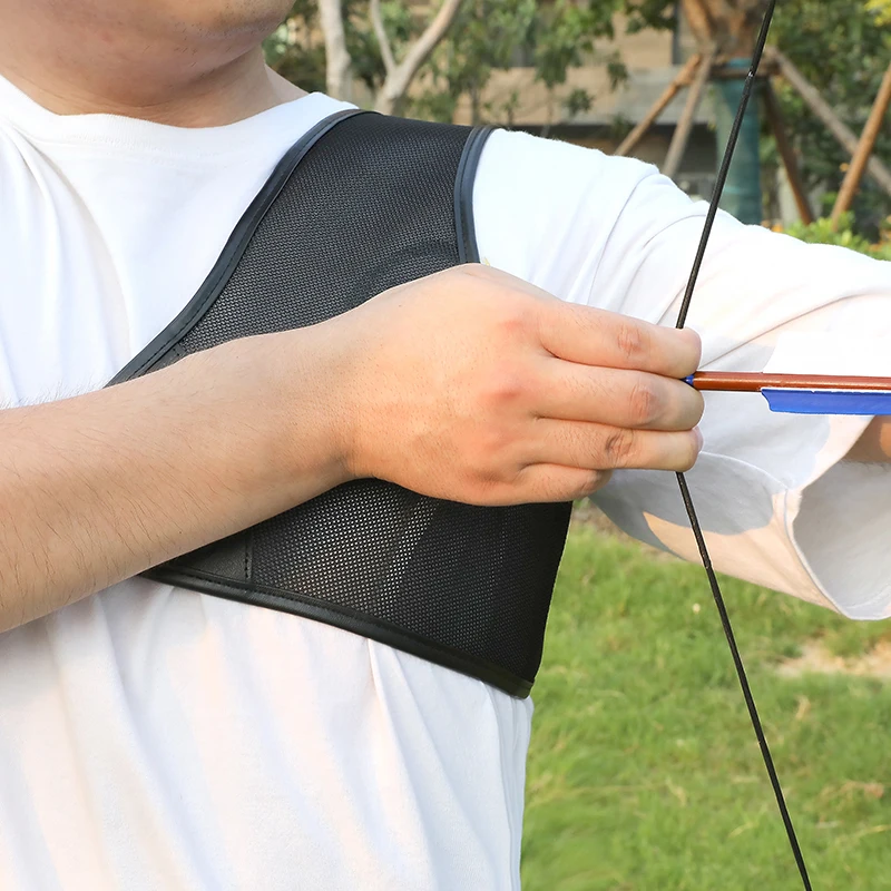 AME-Protector de pecho de tiro con arco, protección de fibra de Mascota, cuero de vaca, longitud duradera, ajustable, competición profesional, mano derecha S/M/L