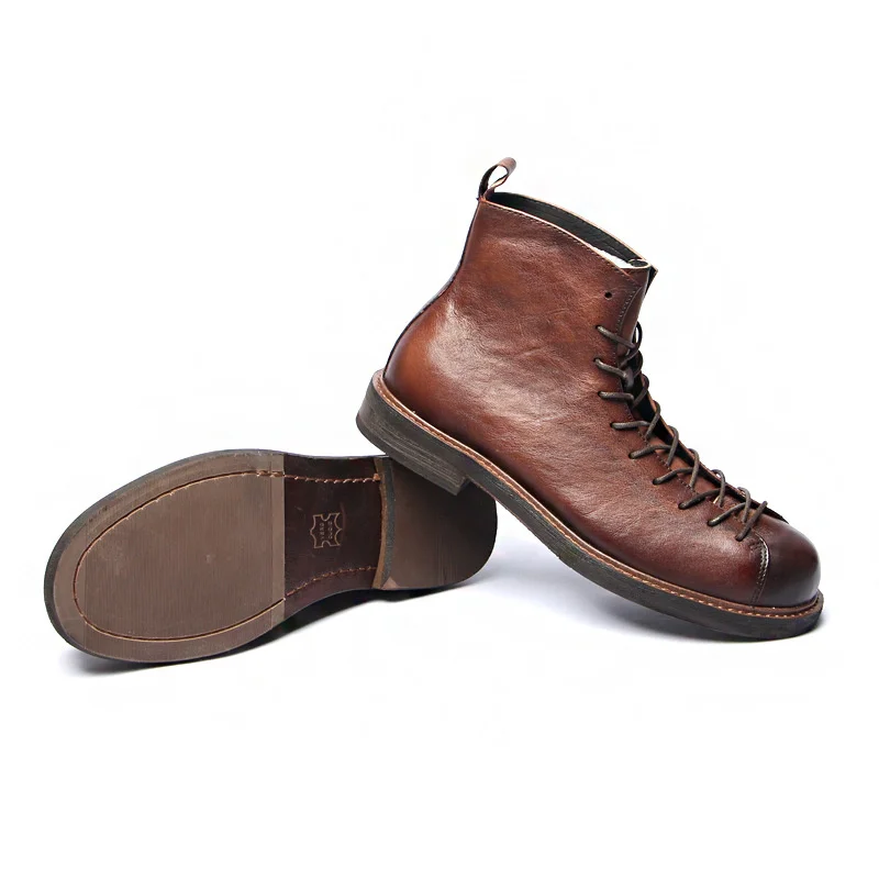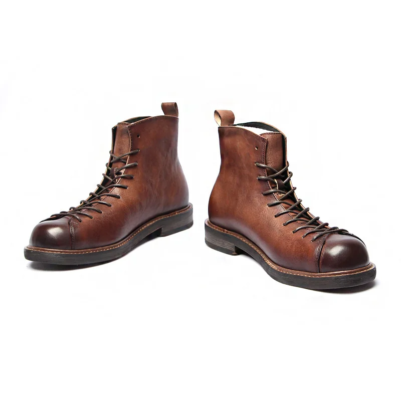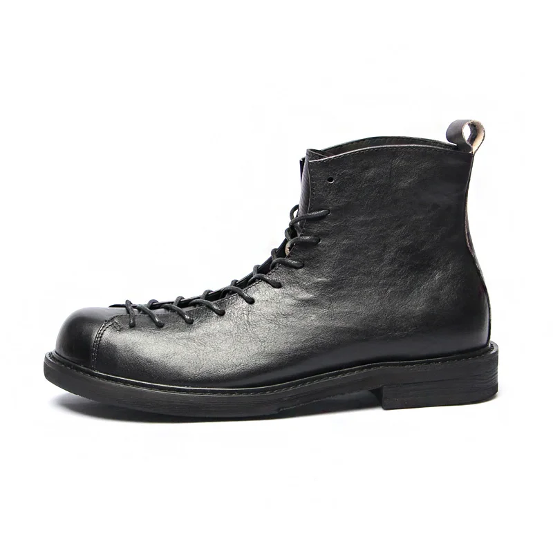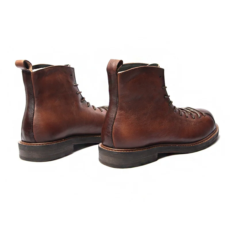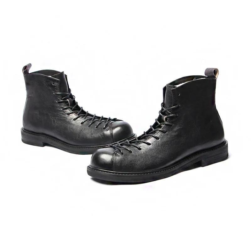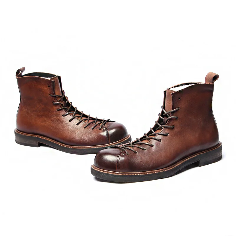 AMEKAJI-Botas de cuero genuino para hombre, calzado de trabajo para actividades al aire libre, senderismo, escalada, cuero genuino