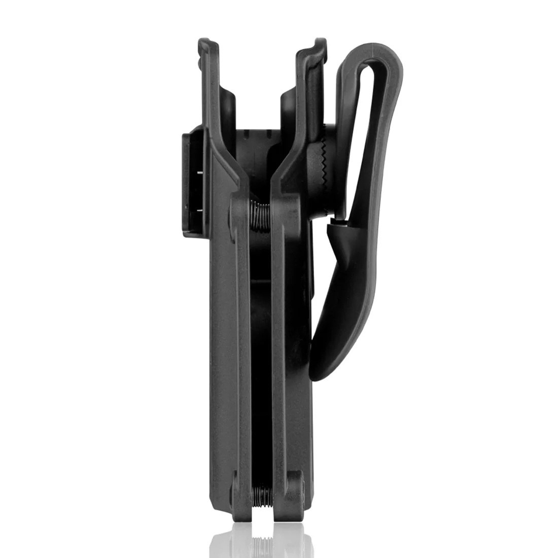 El cuerpo de la funda de rotación de 360 grados y la plataforma de transporte están conectados con un engranaje de dientes y un tornillo. El cuerpo de la funda gira 360 grados. Los jugadores de Airsoft pueden ajustar fácilmente la posición de transporte