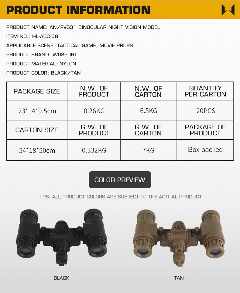 AN/PVS31 Binocular modelo de visión nocturna gafas de doble tubo accesorios simulados casco Airsoft accesorios para caza Cosplay