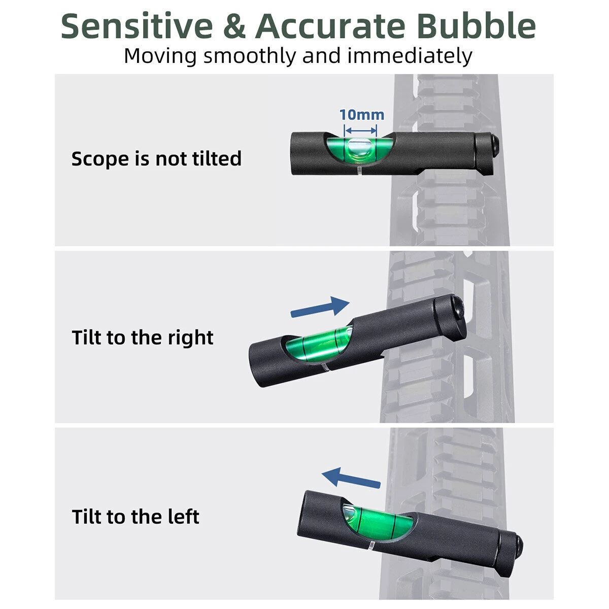 【Fácil de usar】 Nivel de burbuja con acabado mate, reduce el deslumbramiento, nivele rápida y fácilmente su óptica en el campo, en el campo o en casa.