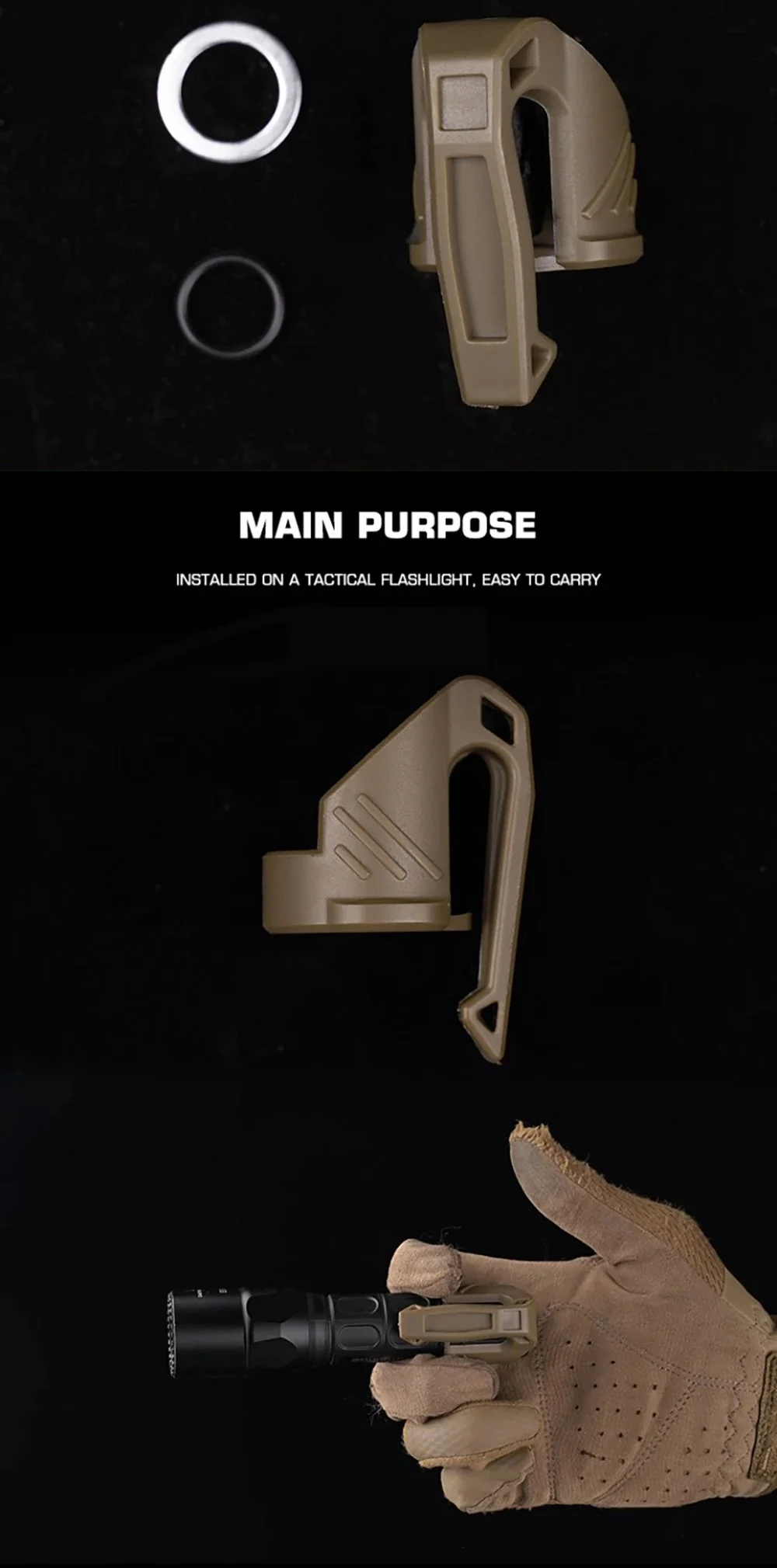 1.Adaptación perfecta: este clip de transporte para linterna tiene un diseño exquisito y puede adaptarse perfectamente a linternas tácticas de varias marcas y modelos, lo que lo hace más cómodo de usar con una compatibilidad extremadamente alta.