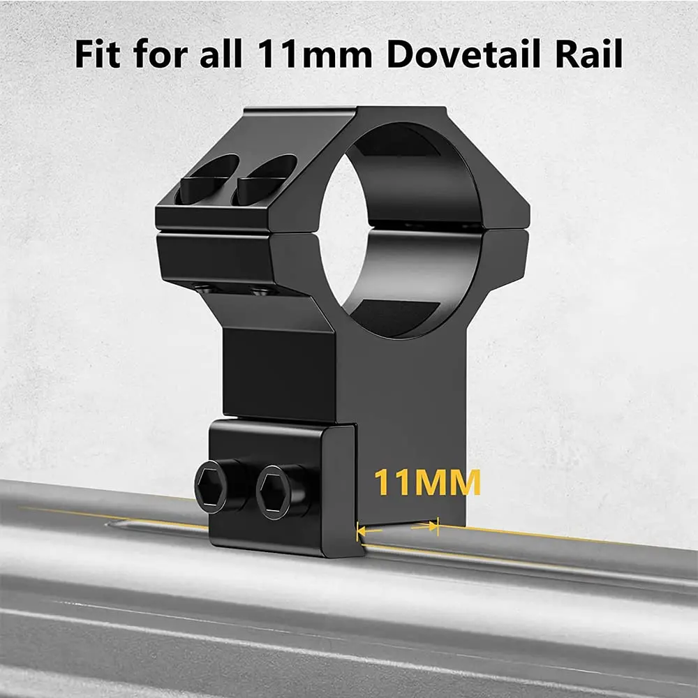 【Adecuado para riel de cola de milano de 11 mm】Los anillos de montaje del alcance se adaptan a rieles de cola de milano de 11 mm.No compatible con plataformas Weaver, Picatinny u otros formatos de cola de milano.