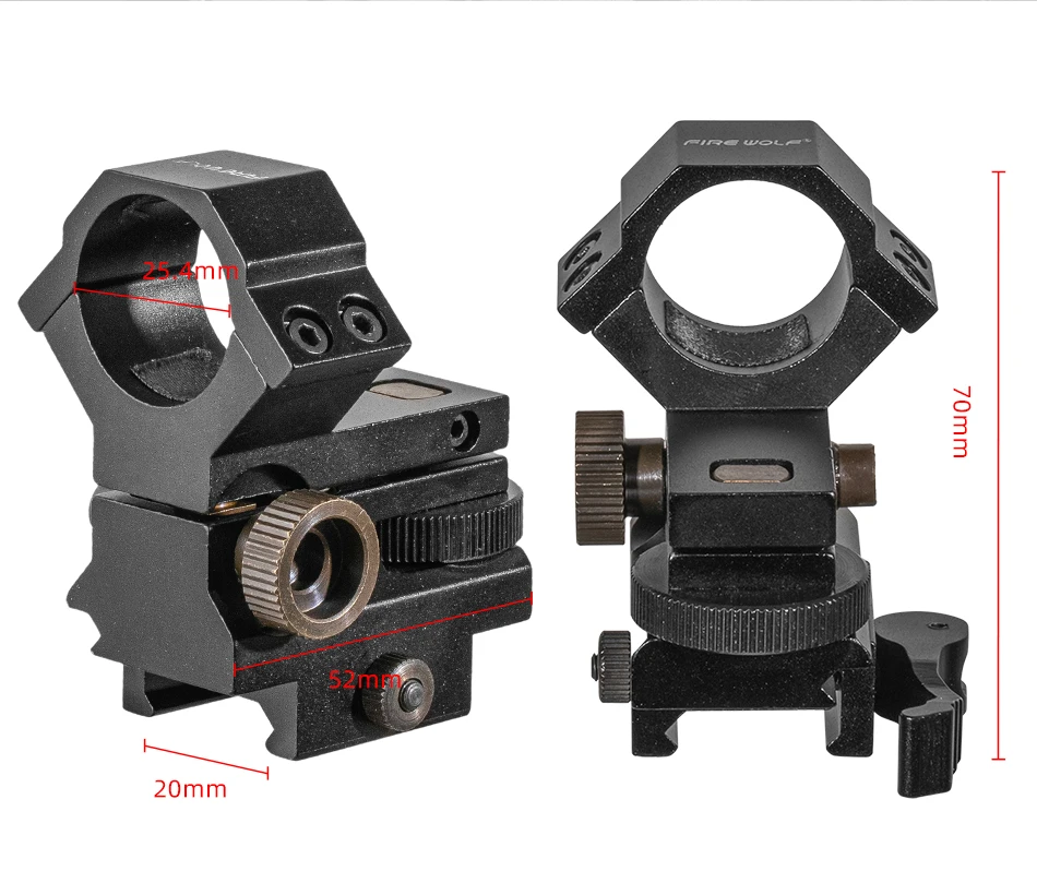 Anillo QD de montaje de 25,4mm, perfil bajo, doble ajustable, alcance de elevación, mira láser, abrazaderas para linterna, soporte de caza
