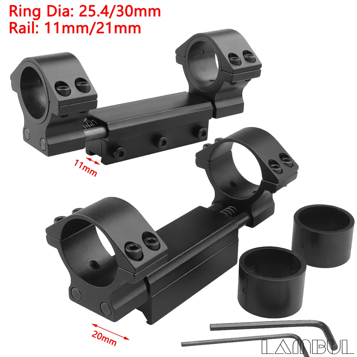 Anillo Universal de 25,4/30mm, montaje de alcance de riel de 11/20mm, anillo doble de una pieza, adaptador de montaje para mira óptica de pistola de perfil alto y bajo