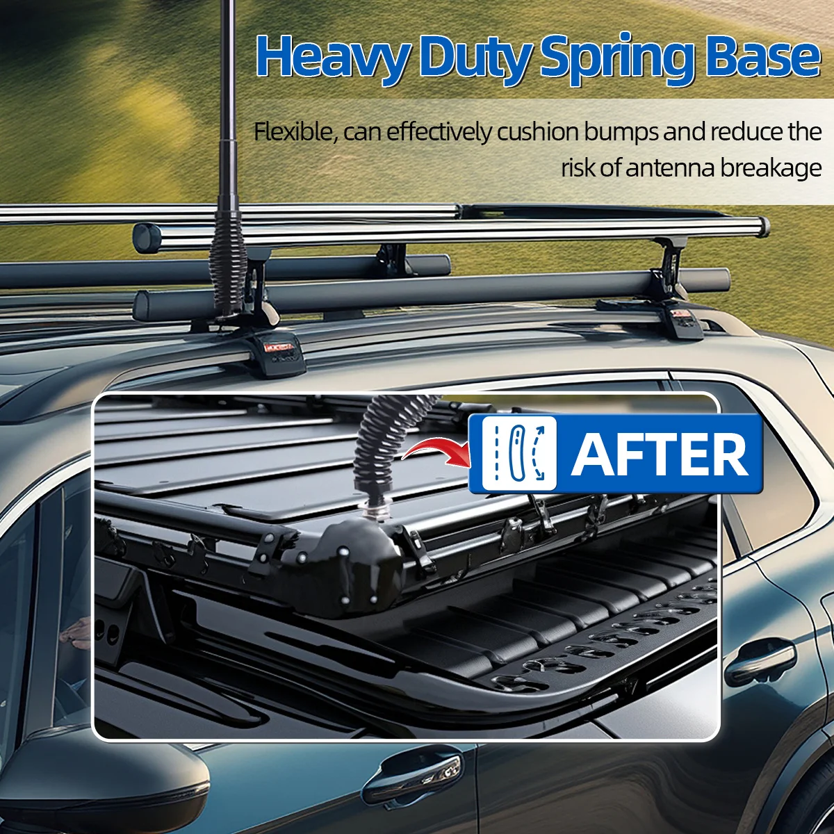 🚚Base de resorte resistente: la base de resorte equipada con la antena GMRS tiene buena elasticidad y dureza.Cuando se produce una gran vibración durante el proceso de conducción, la base del resorte puede actuar como un amortiguador, reduciendo el daño a la antena causado por la vibración, protegiendo la integridad estructural de la antena y también ayudando a mantener la dirección vertical de la antena, asegurando el ángulo óptimo para la transmisión de la señal.