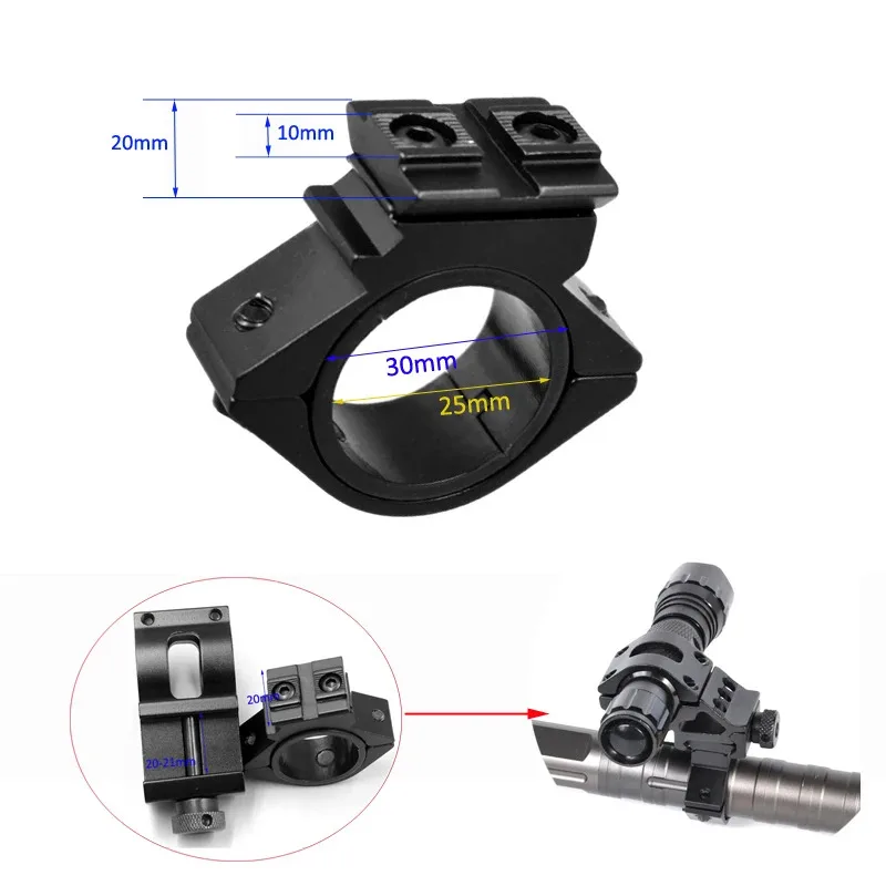 Antorcha táctica de alcance de 25mm/30mm, montaje de mira láser, accesorio adaptador de anillo de linterna RIS de 10mm/20mm