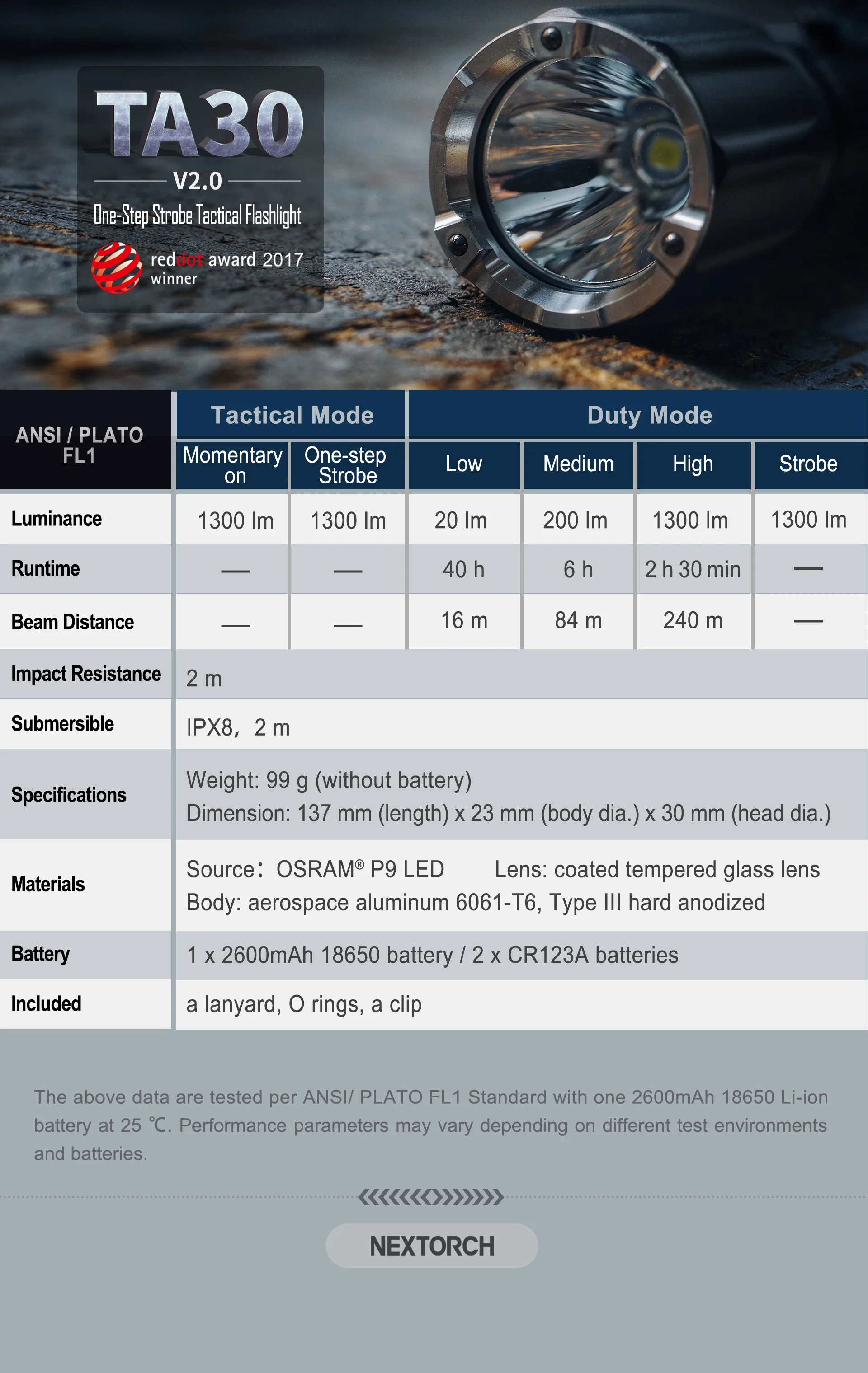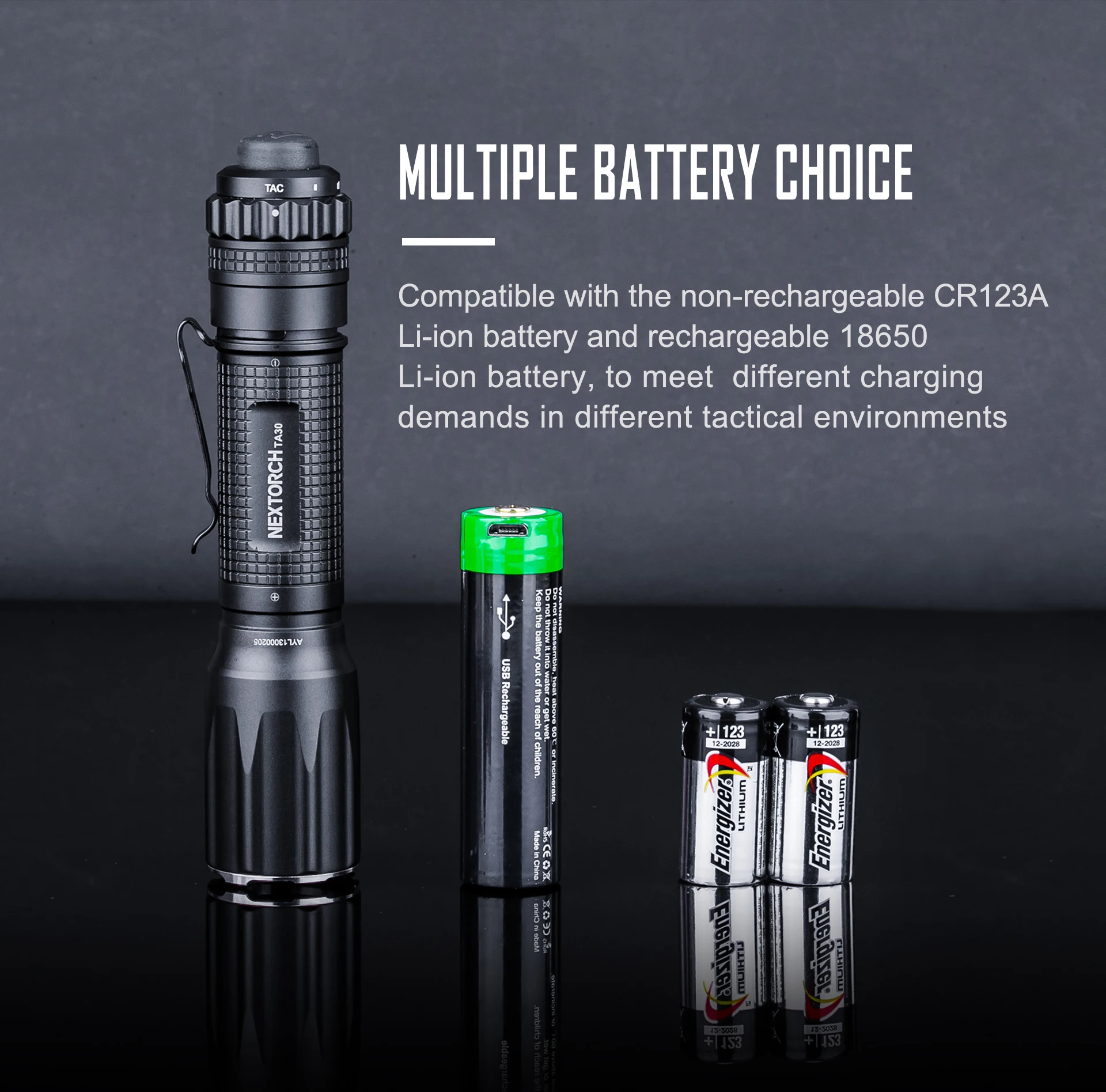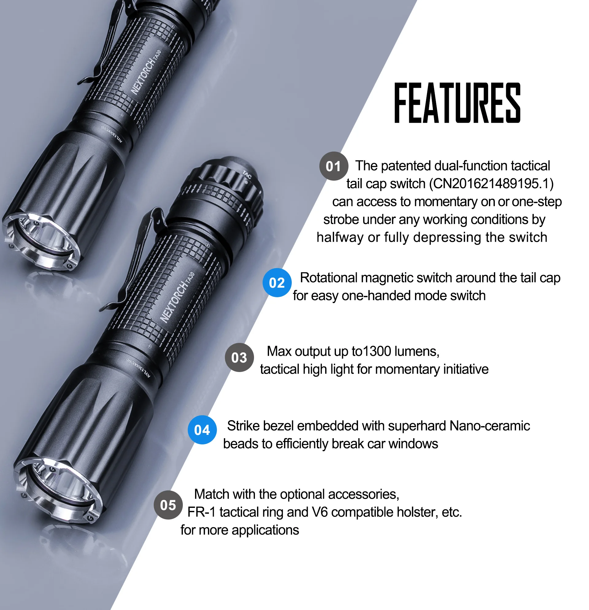 1. TA30 V2.0 1300 lúmenes Una antorcha táctica de alto brillo con flash de ráfaga de un toque diseñada para oficiales tácticos y policiales.