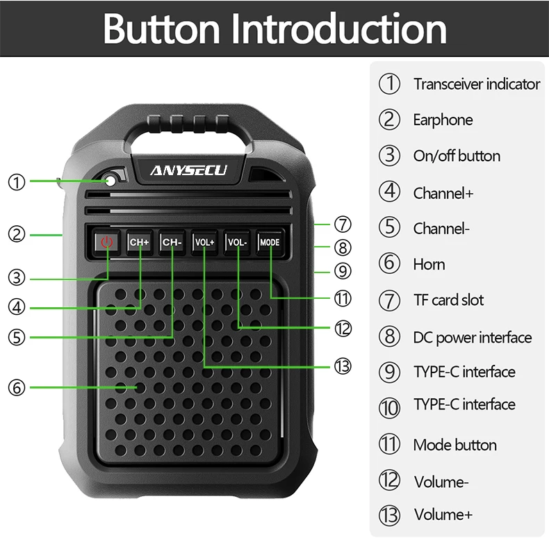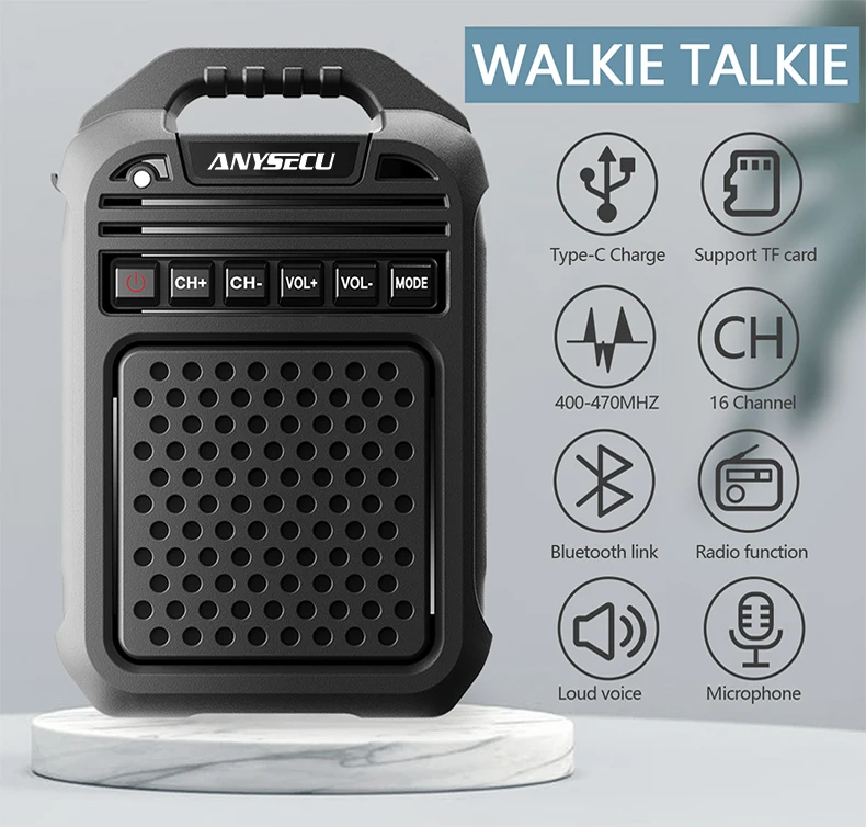 ANYSECU inalámbrico nuevo intercomunicador de dos vías amplificador K888 banda de frecuencia UHF Radio FM CTCSS función de interfaz de tipo C programación