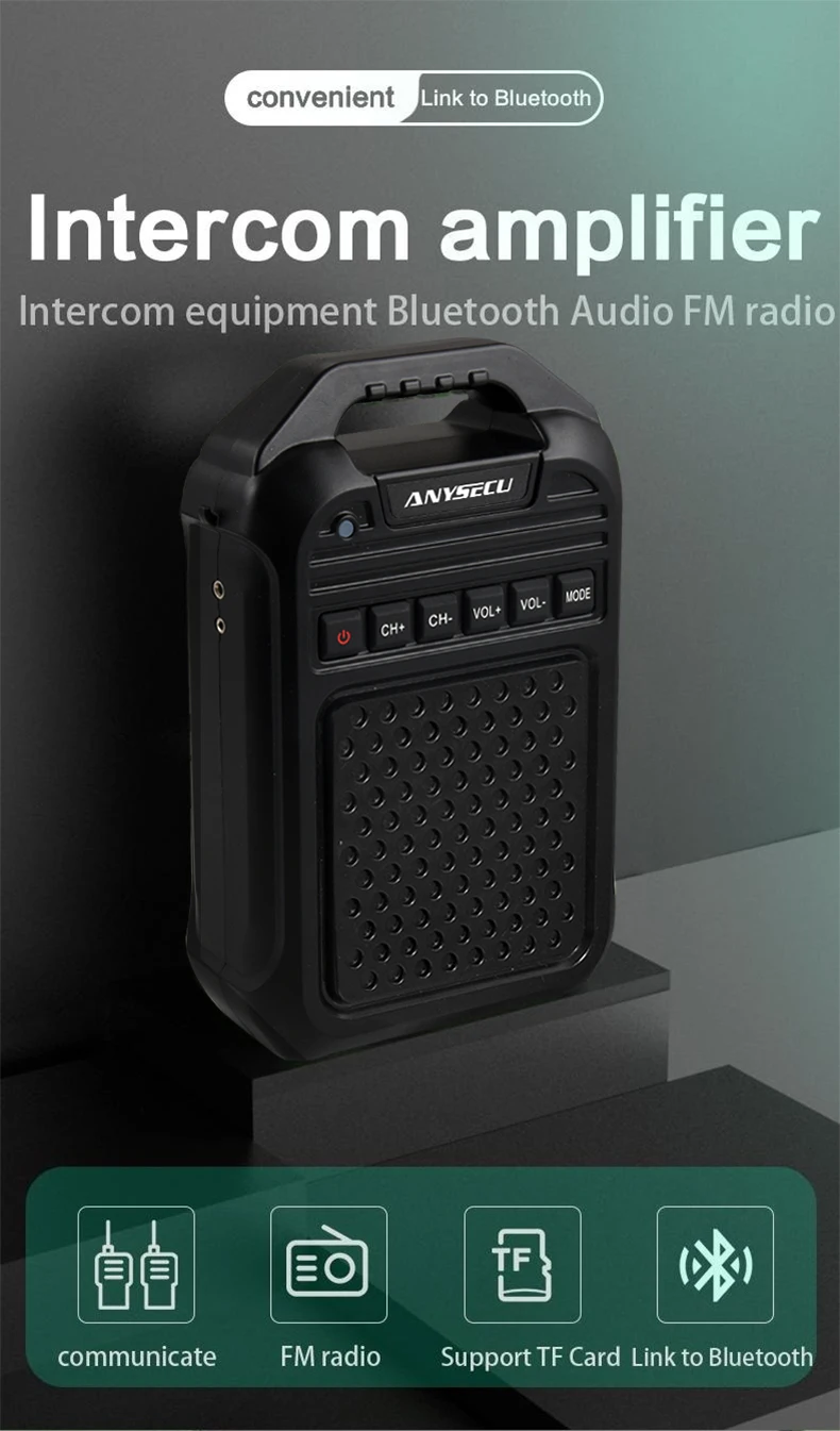 ¿Este amplificador puede funcionar como la analógicos tradicionales intercomunicador y alsosupport radio FM en tu tiempo libre? ¡Podría ser de música de tarjeta TF Bluetooth conexión pública dirección en ambiente ruidoso! ¿Esto puede ser colgado en la pared de pie en el escritorio pero también fácil de llevar a cabo?