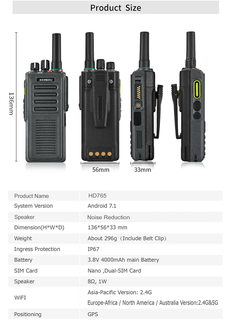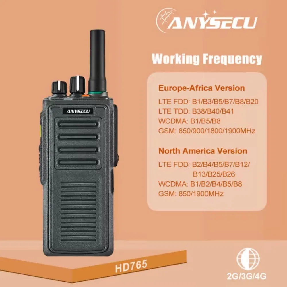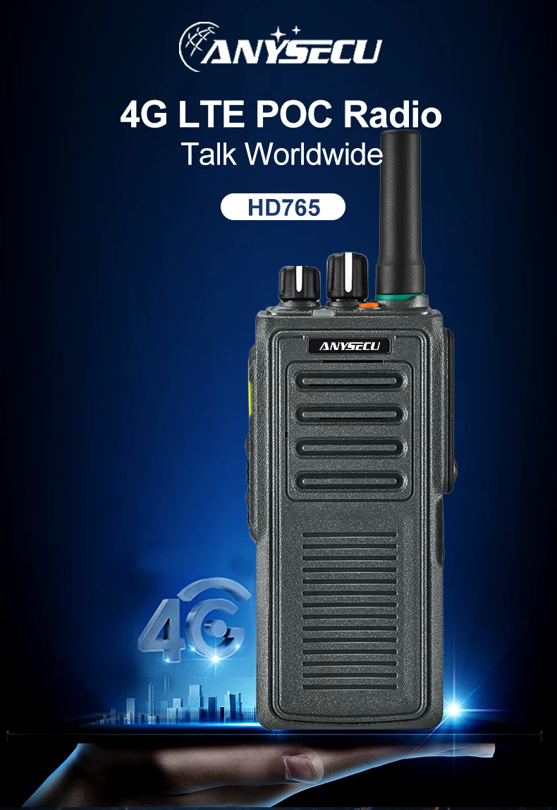 Walkie Talkie Anysecu HD765 4G POC, tarjeta SIM dual de 4000mAh, IP67, Android, con GPS BT4.0, con interfaces tipo C y NFC, mAh