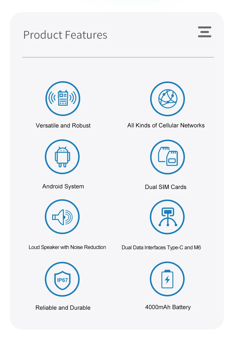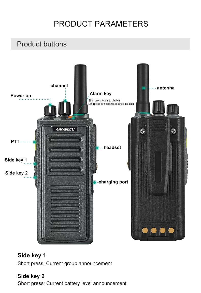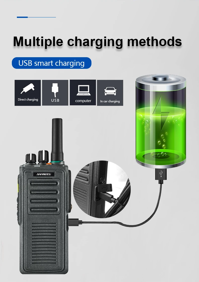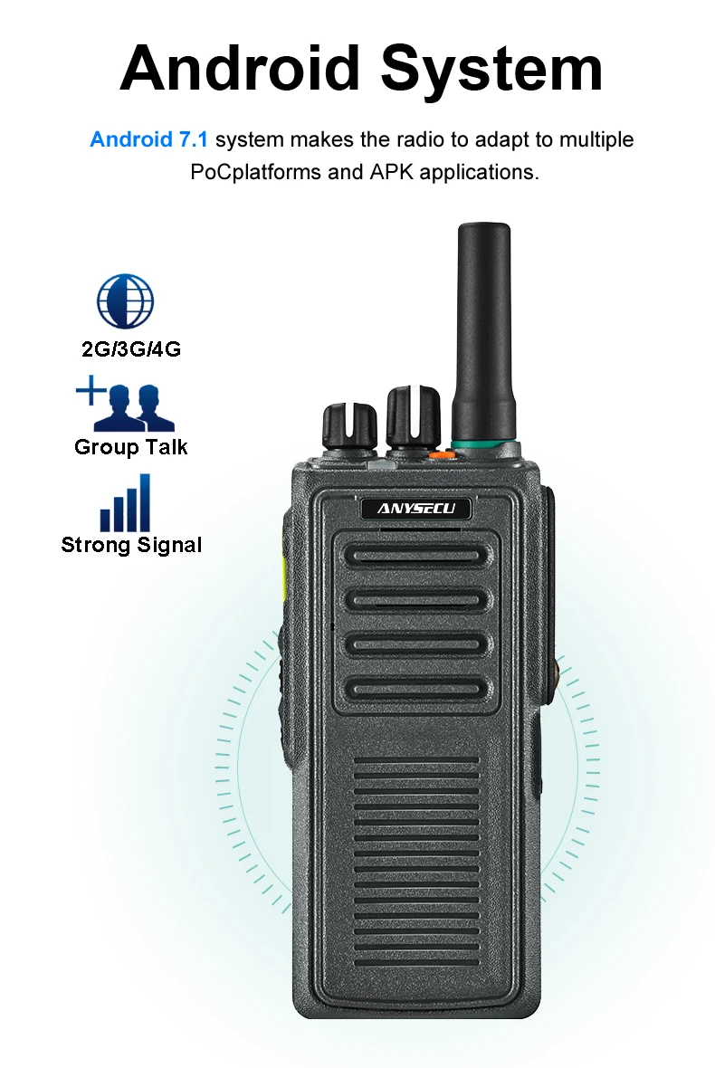 Walkie Talkie Anysecu HD765 4G POC, tarjeta SIM dual de 4000mAh, IP67, Android, con GPS BT4.0, con interfaces tipo C y NFC, mAh