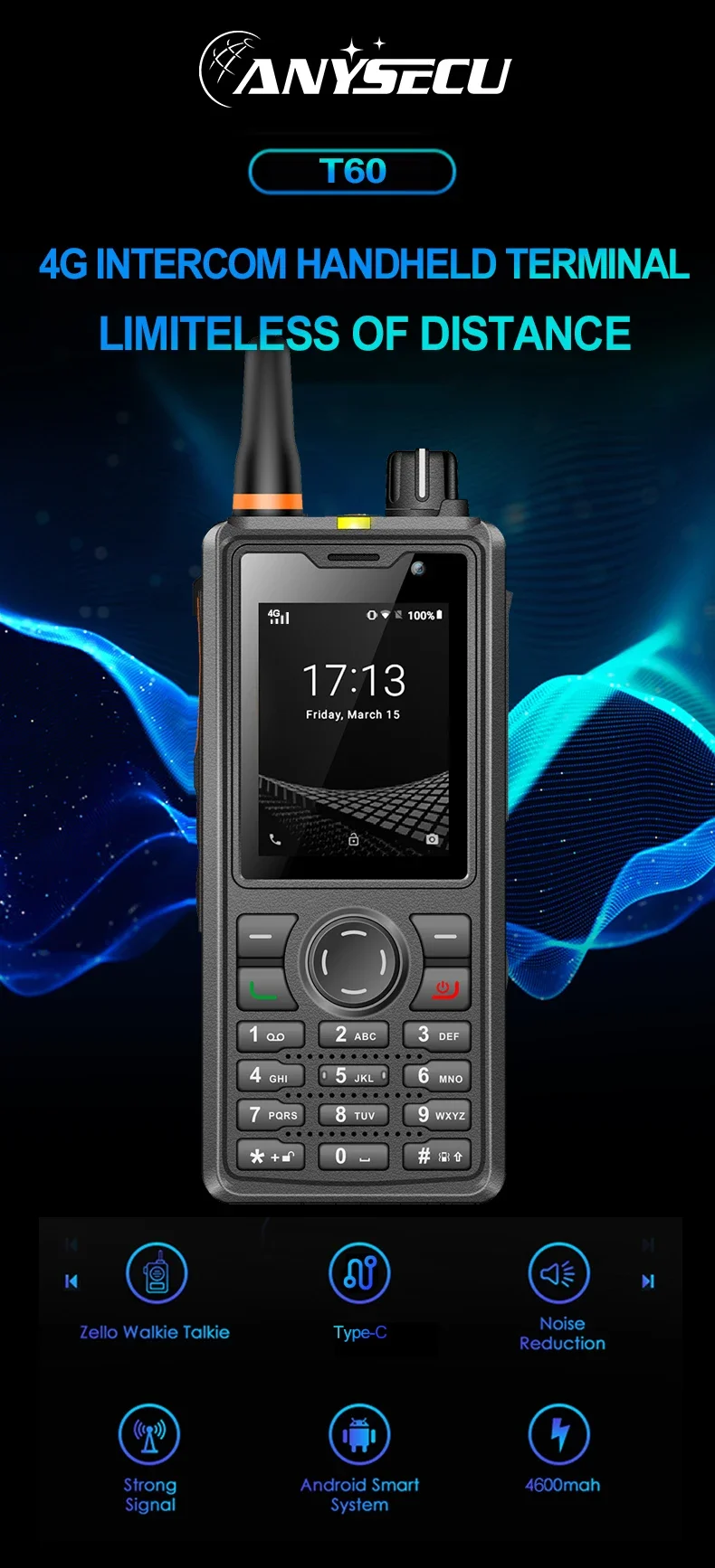 ANYSECU T60 4G Radio de red WiFi GPS LTE WCDMA GSM POC Walkie Talkie F41 desbloqueado Compatible con Zello Real-PTT Echolink POCstar
