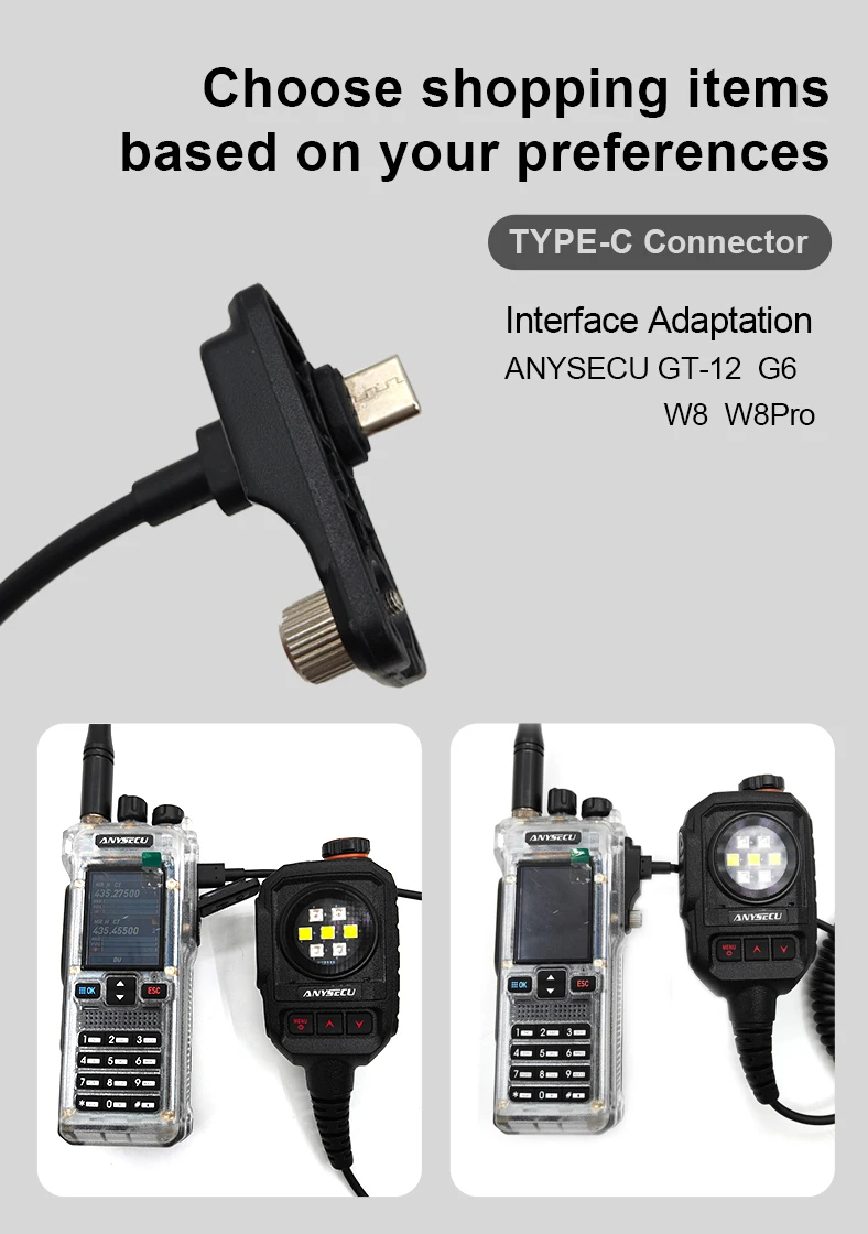 SHX-MIC-TPC01Modelos aplicables: con conector tipo C, para radio Senhaix GT-12 GT12, para radio Anysecu poc W8/G6 y algunas otras máquinas Typc-C