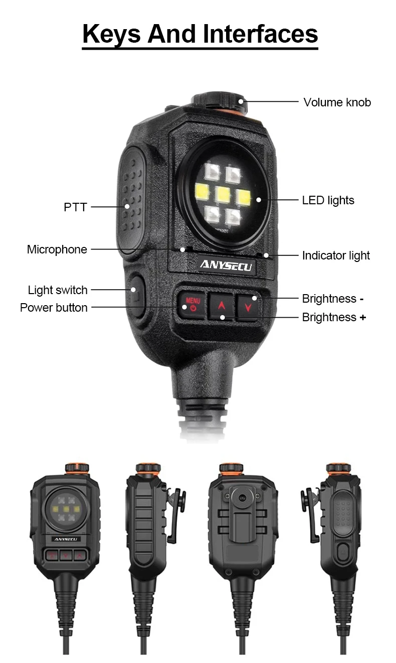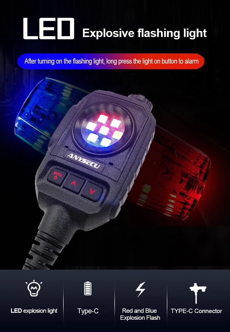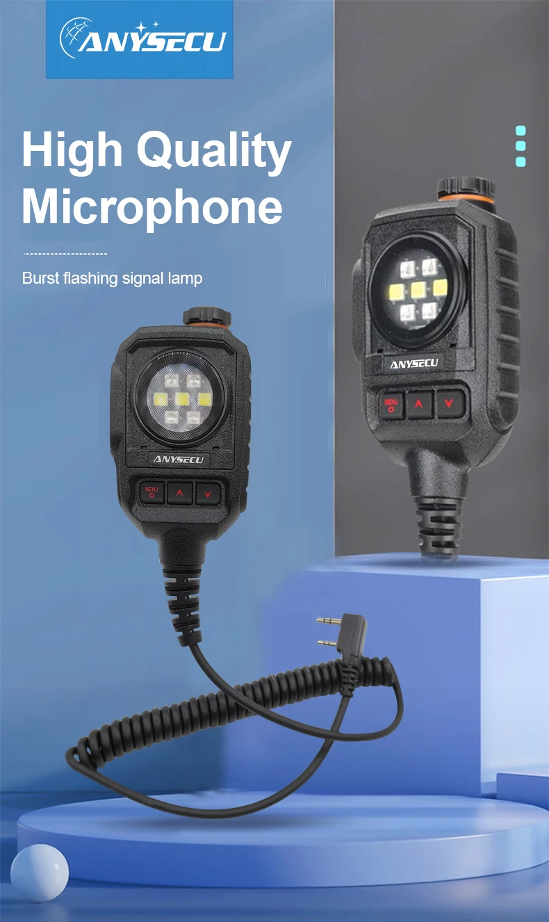 ANYSECU SenHaix micrófono de hombro tipo C o K conector de cabeza con luz estroboscópica para radio bidireccional TYT Anysecu Baofeng GT-12
