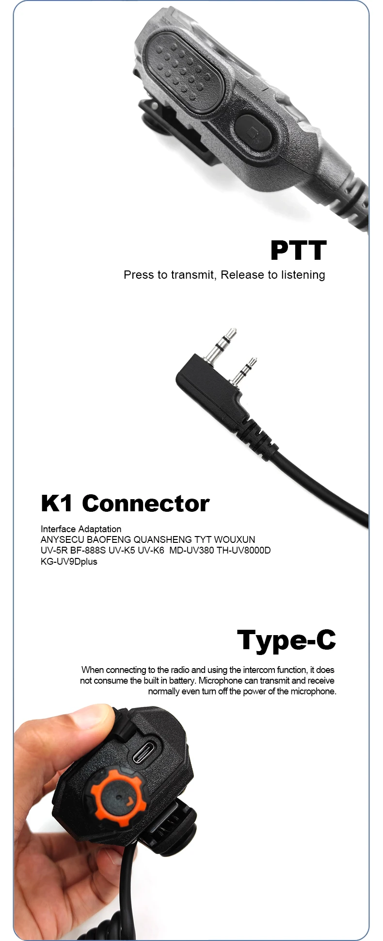 SHX-MIC-K01Modelos aplicables: Para Baofeng, Para Quansheng, Para máquina Senhaix K-head