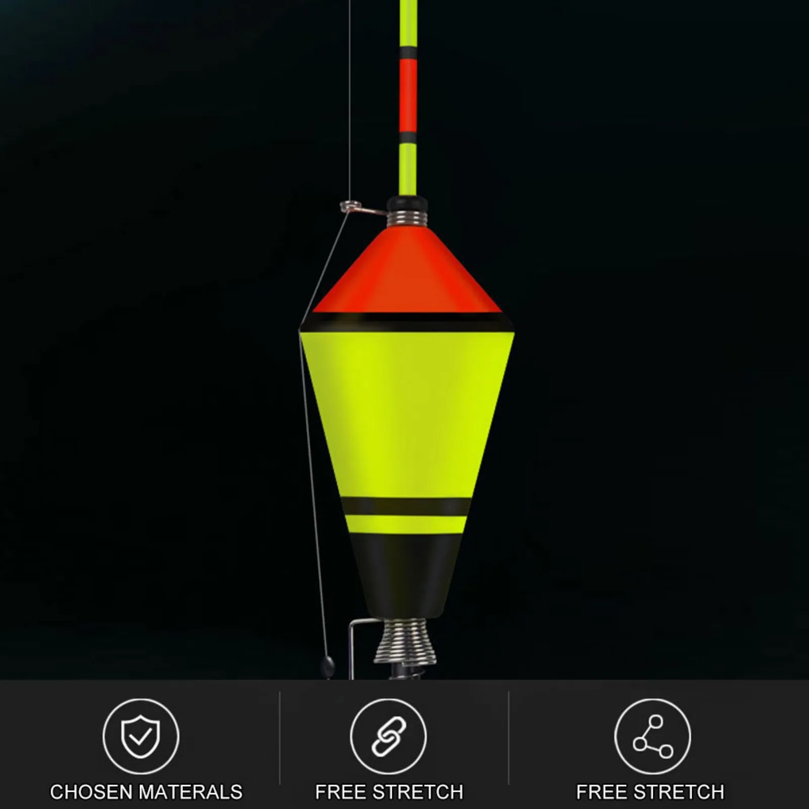 3. El cuerpo flotante está hecho de materiales EVA de la más alta calidad, el cuerpo flotante es elástico. Puede enviar señales inmediatamente una vez que el pez muerda el anzuelo.
