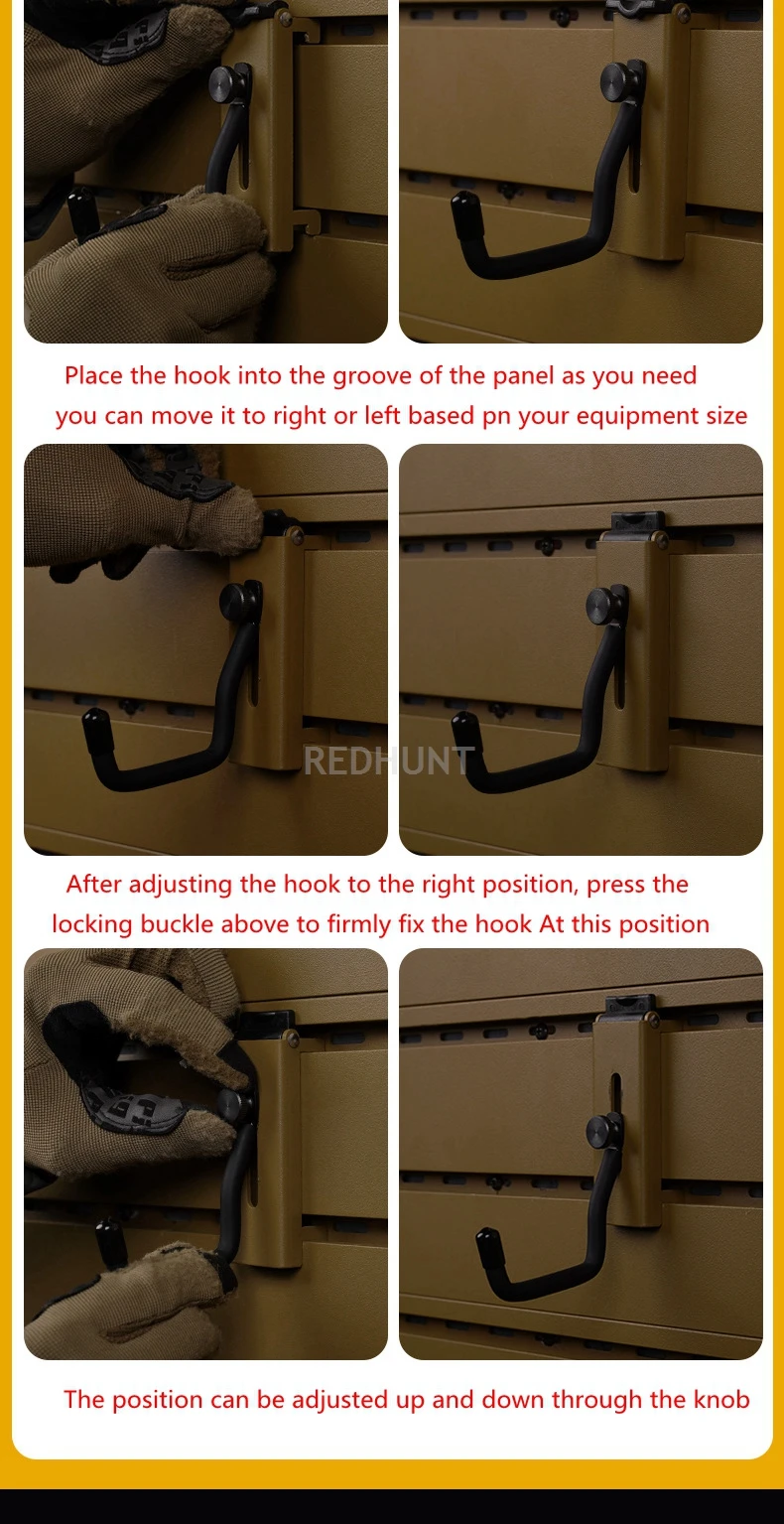 Sobre el tablero de visualización.Dentro DE LA RANURA, la posición del gancho se puede mover a izquierda y derecha según sea necesario
