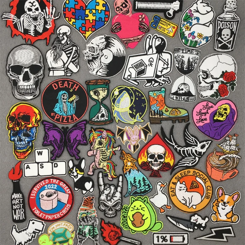 Aplicación de planchado, mochila textil Punk, calaveras divertidas y dibujos animados, parches de banda, pegatinas de ropa de Anime para chaqueta
