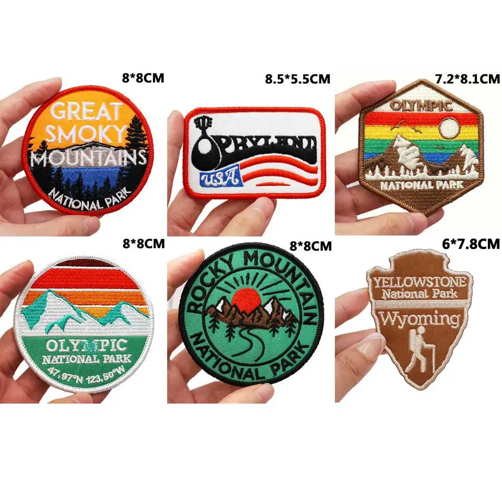Aplique bordado de insignia de parque americano, etiqueta de costura, parches de motorista punk con respaldo de gancho