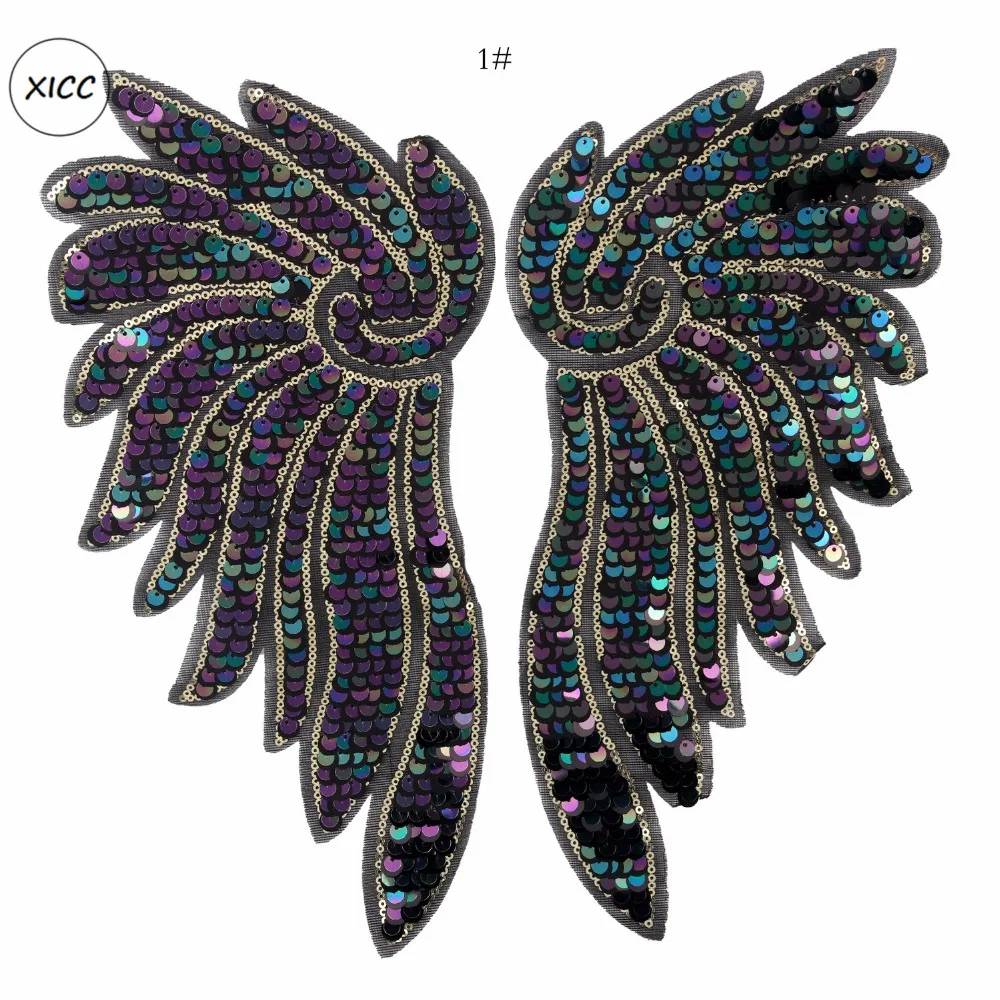 Apliques de alas de Ángel azul, cuentas brillantes, hermosos parches con lentejuelas, tamaño grande, dibujos animados, flores decorativas para costura, pegatinas DIY para ropa