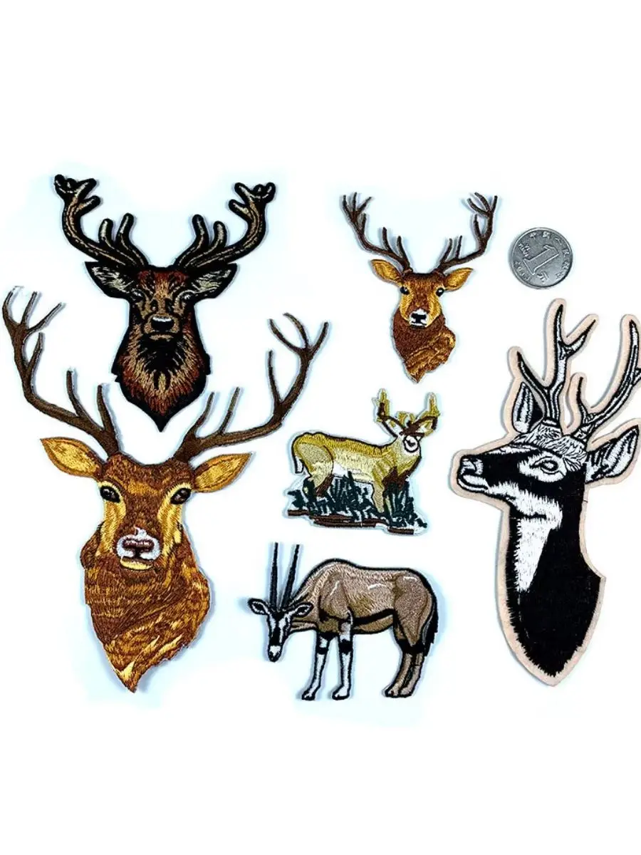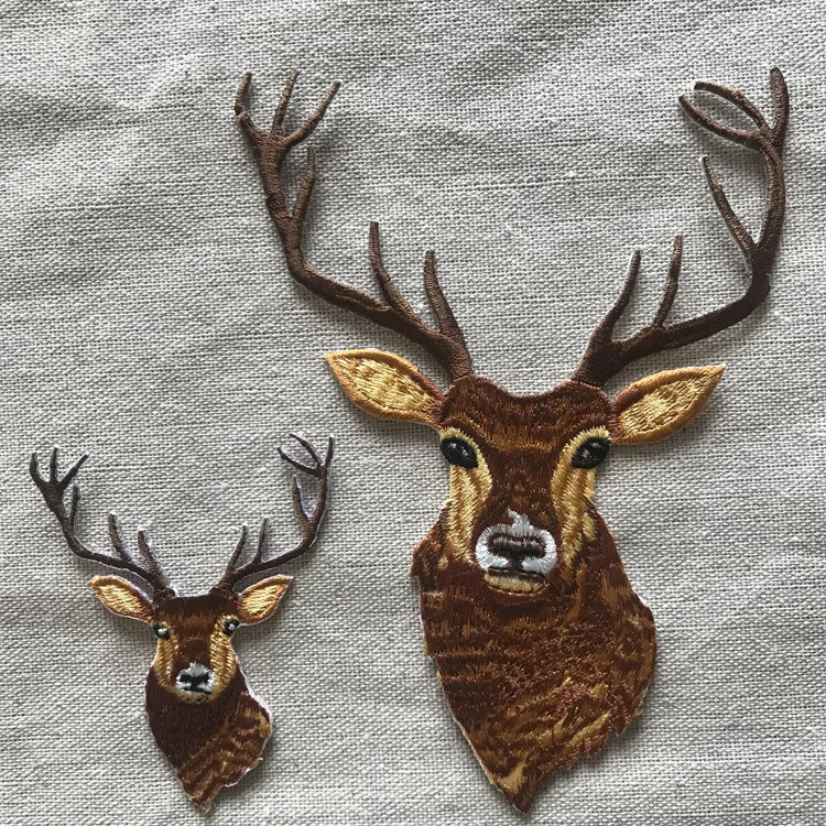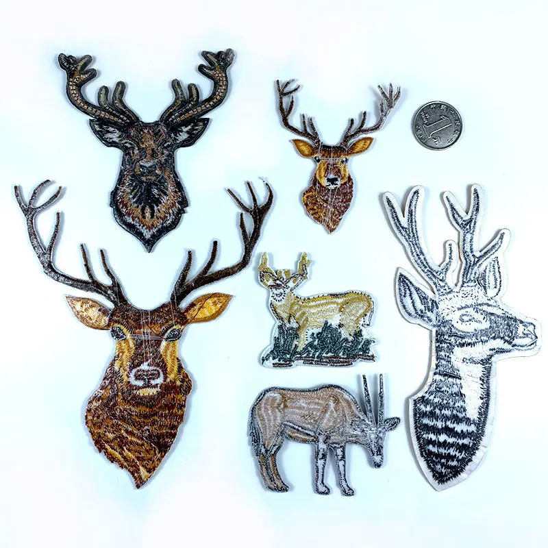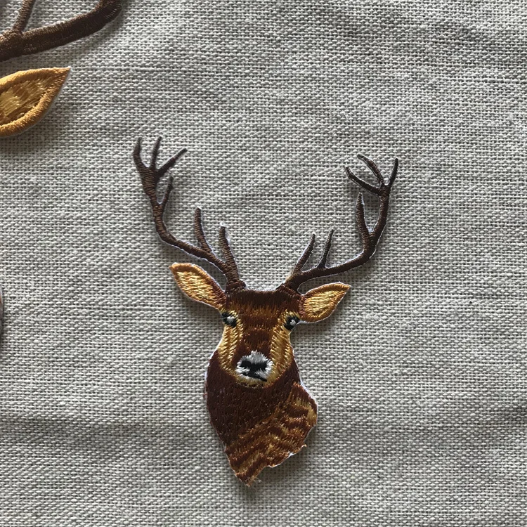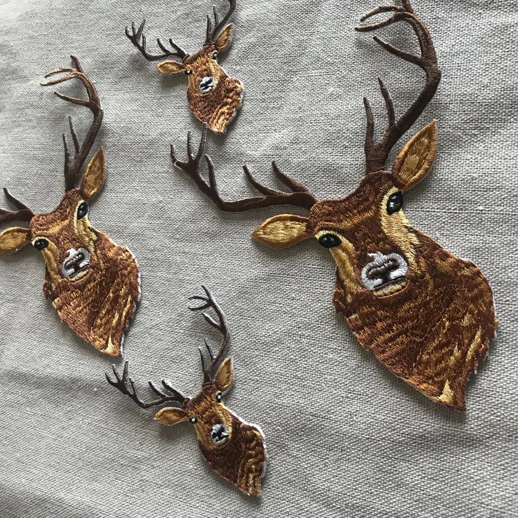 Apliques bordados de ciervos de Navidad de dibujos animados, parches para planchar para ropa, pegatinas de cabeza de alce, insignias de animales bonitas, Parches