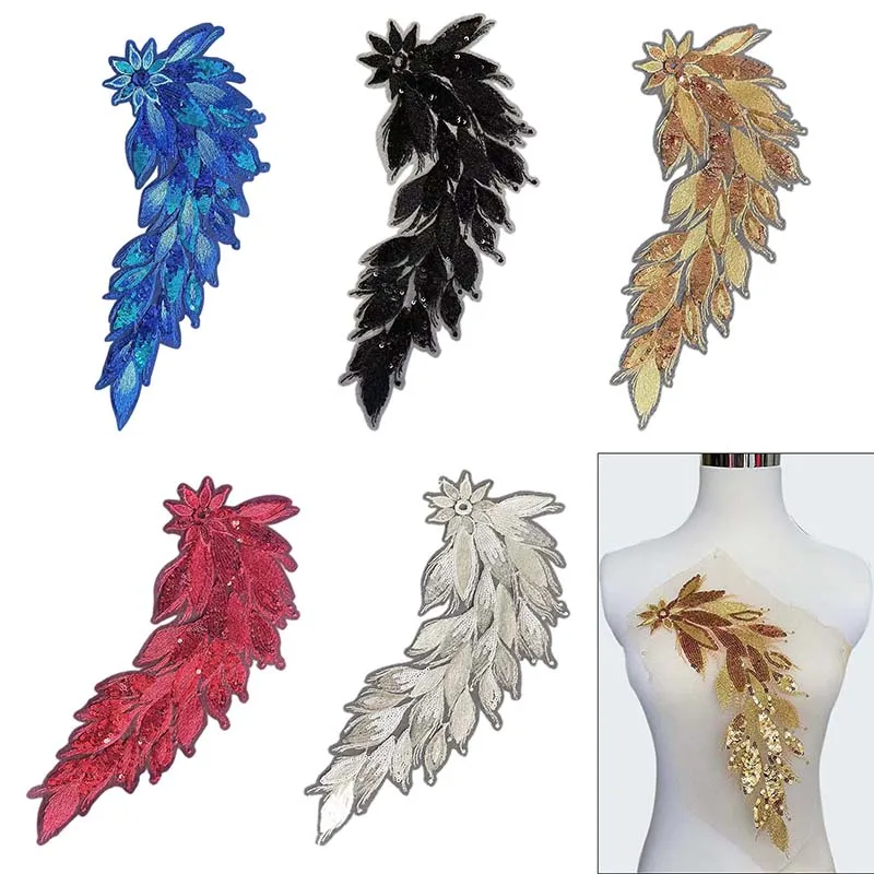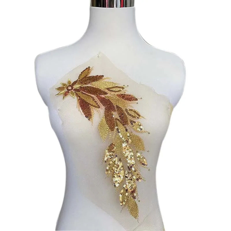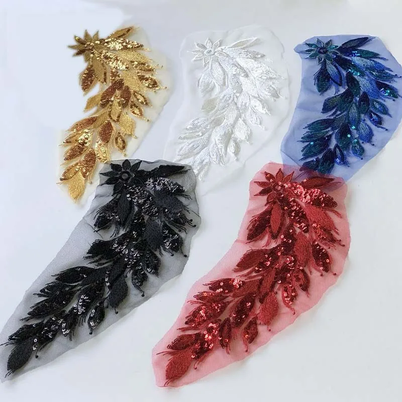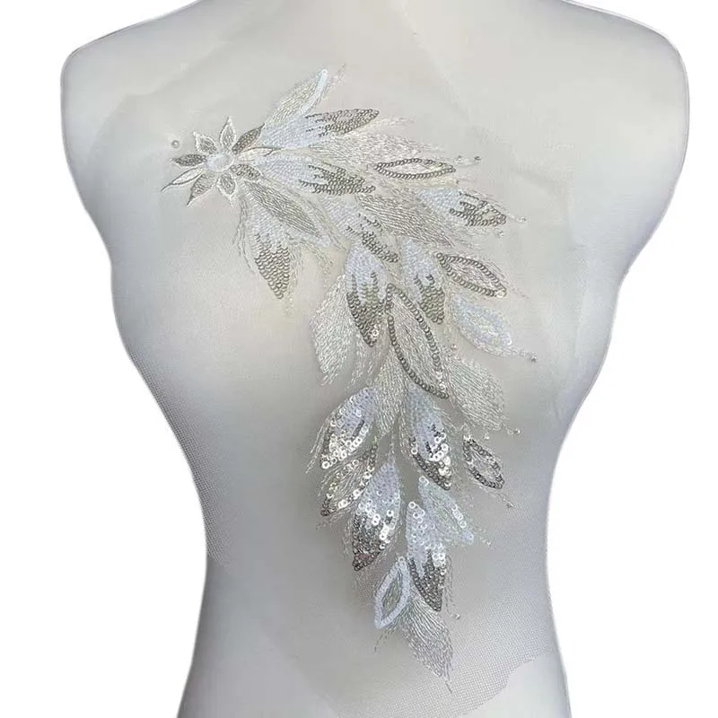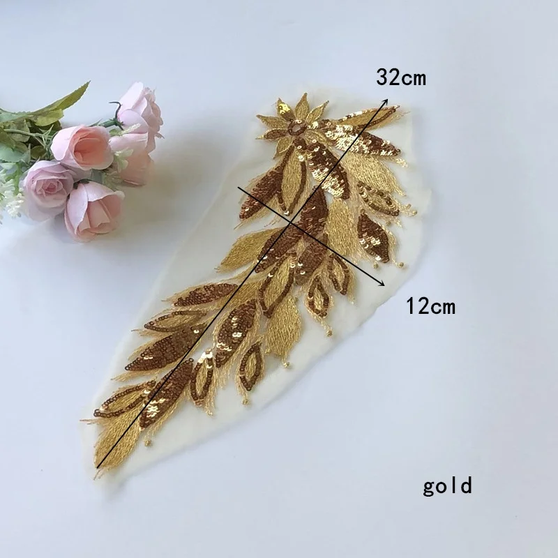 Apliques bordados de lentejuelas para vestidos de mujer, parches de encaje recortados, decoraciones de boda, 32x12CM