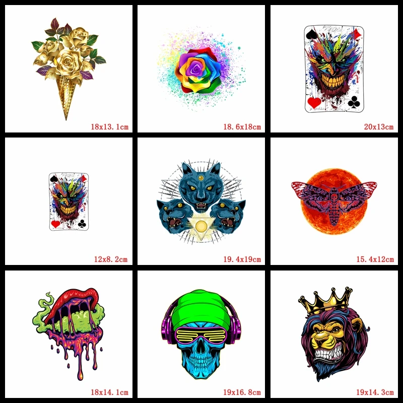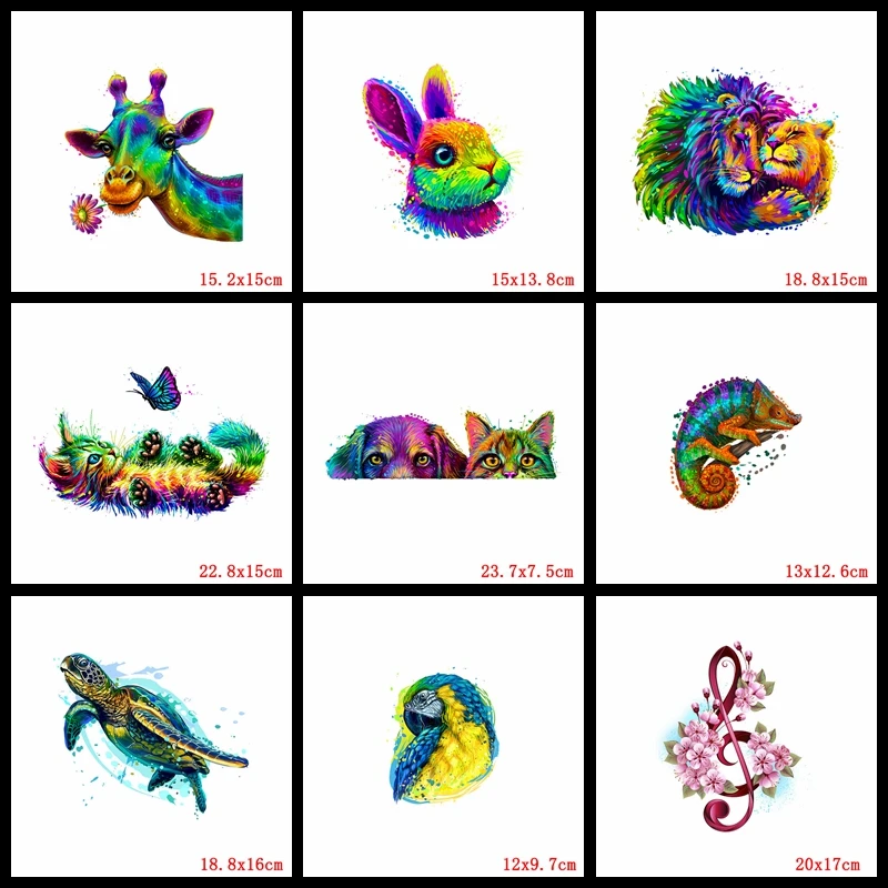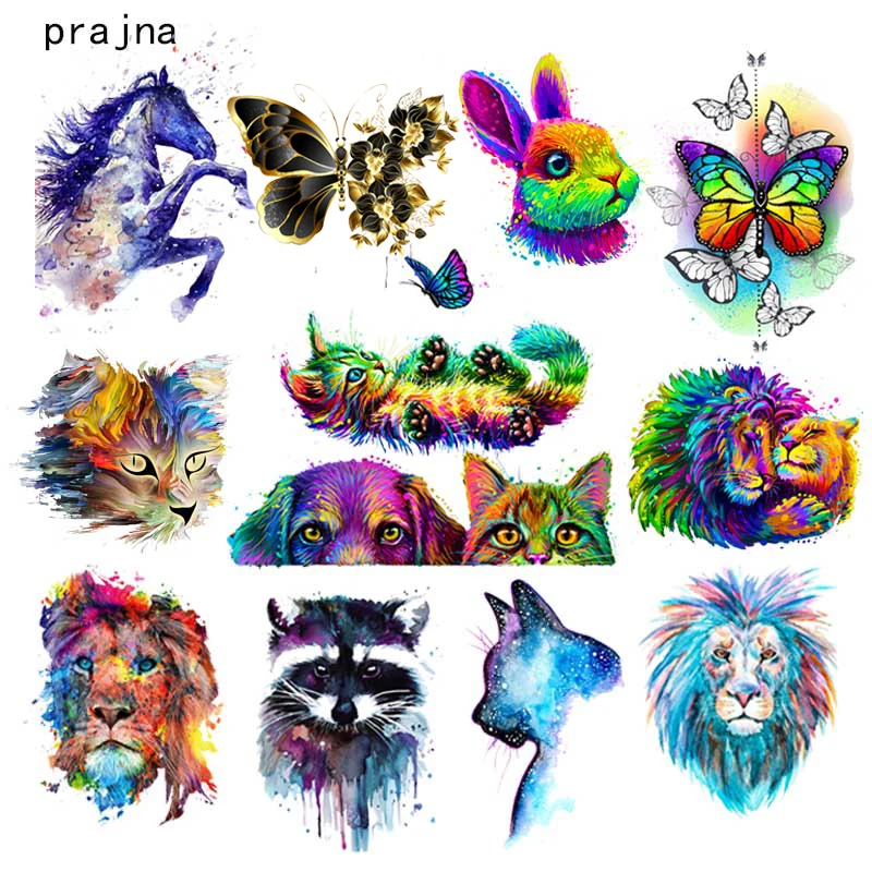 Apliques de León y Animal de colores, transferencias de hierro para ropa, mariposa, gato, transferencia de calor, parche de vinilo, pegatinas térmicas para ropa