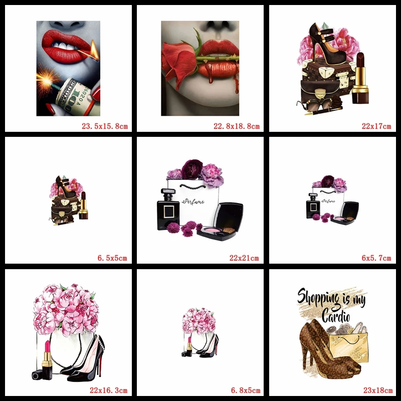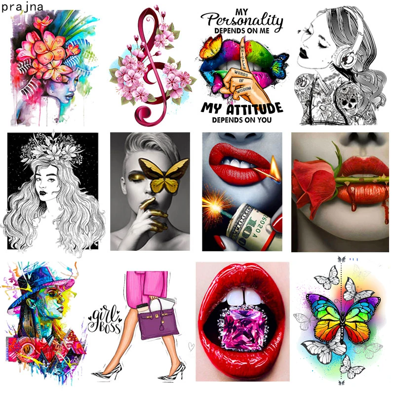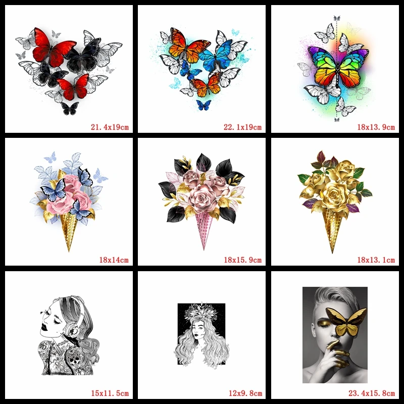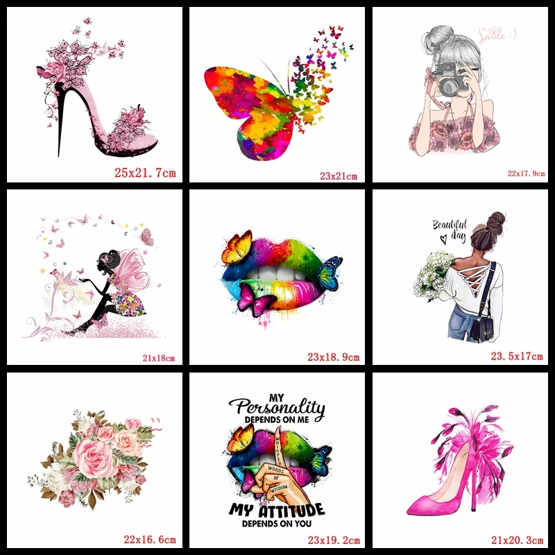 Apliques de transferencia térmica de calor para mujer, pegatinas de transferencia de calor de labios de mariposa DIY, transferencia de hierro para ropa, camiseta de moda