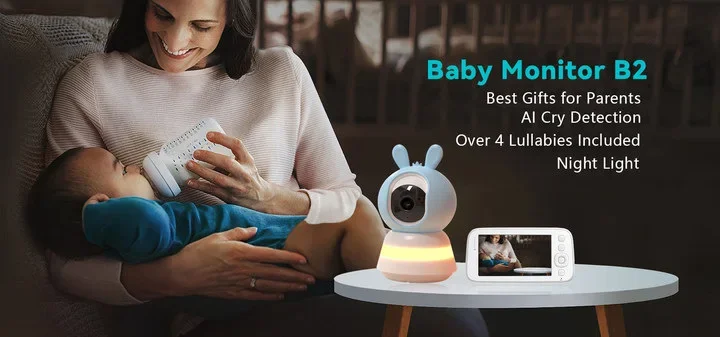 Tuya APP B2 Monitor de bebé inalámbrico pantalla de 5 pulgadas 4MP monitoreo de temperatura intercomunicador PTZ visión nocturna recordatorio cámara de bebé