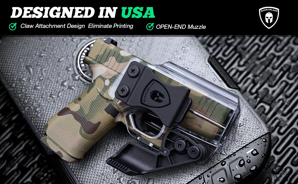 Corte óptico y garra: La funda está diseñada para acomodar una amplia variedad de ópticas-la garra puede eliminar la impresión hace que la funda sea más ocultable al transportarla (equipada con tornillos adicionales para transportarla sin garra)