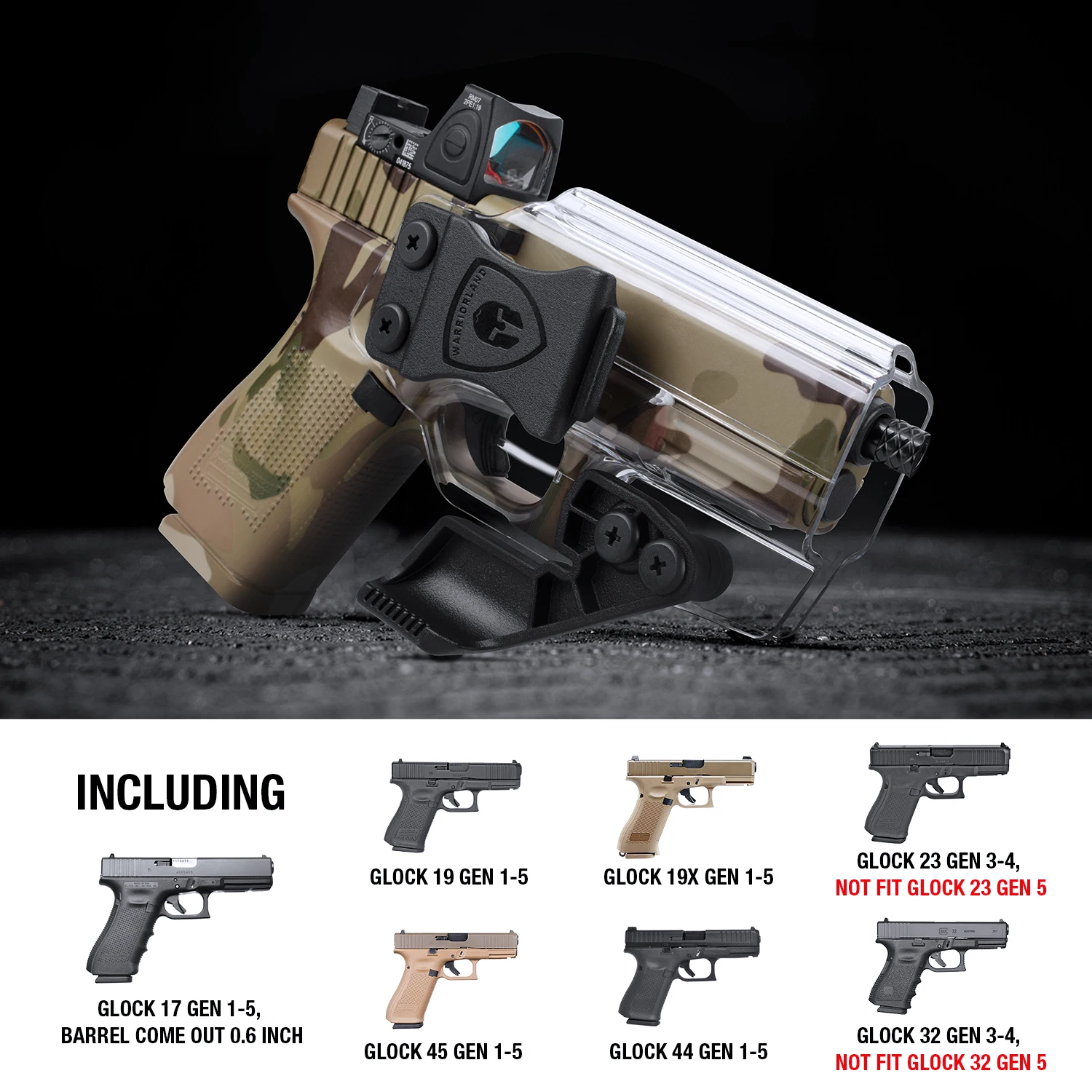 COMPATIBILIDAD: La funda es compatible con Glock G17/G19/G19X/G44/G45 (GEN 1-5) y G23/G32 (GEN 3-4) -Incompatible con G23/G32 GEN 5, ni ningún láser/luz