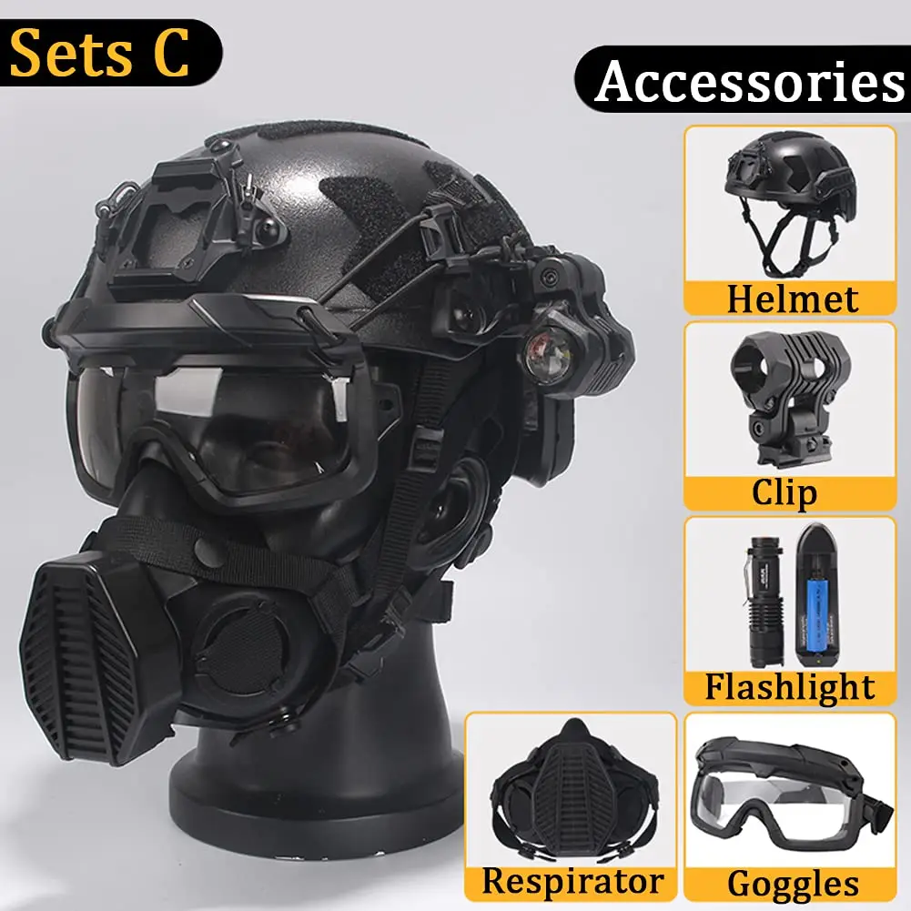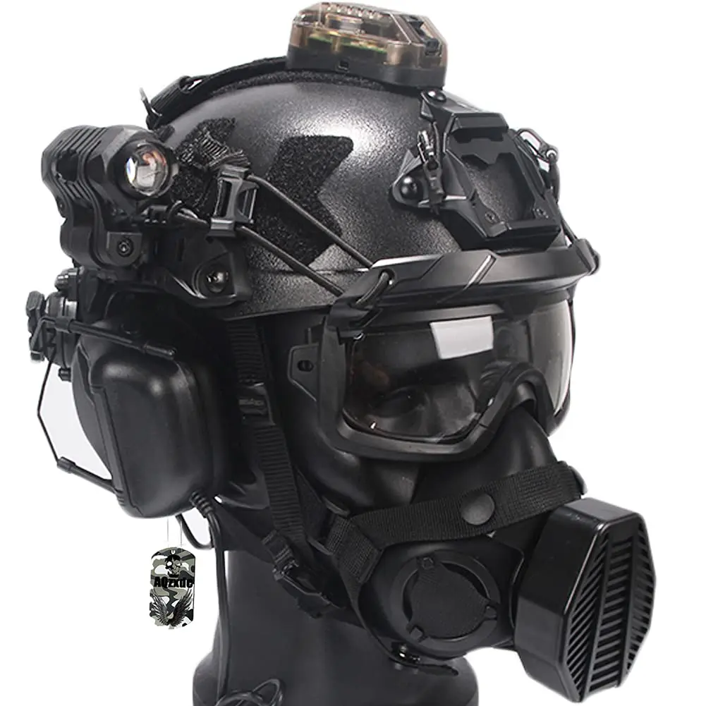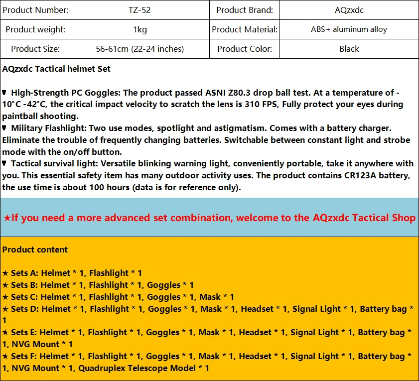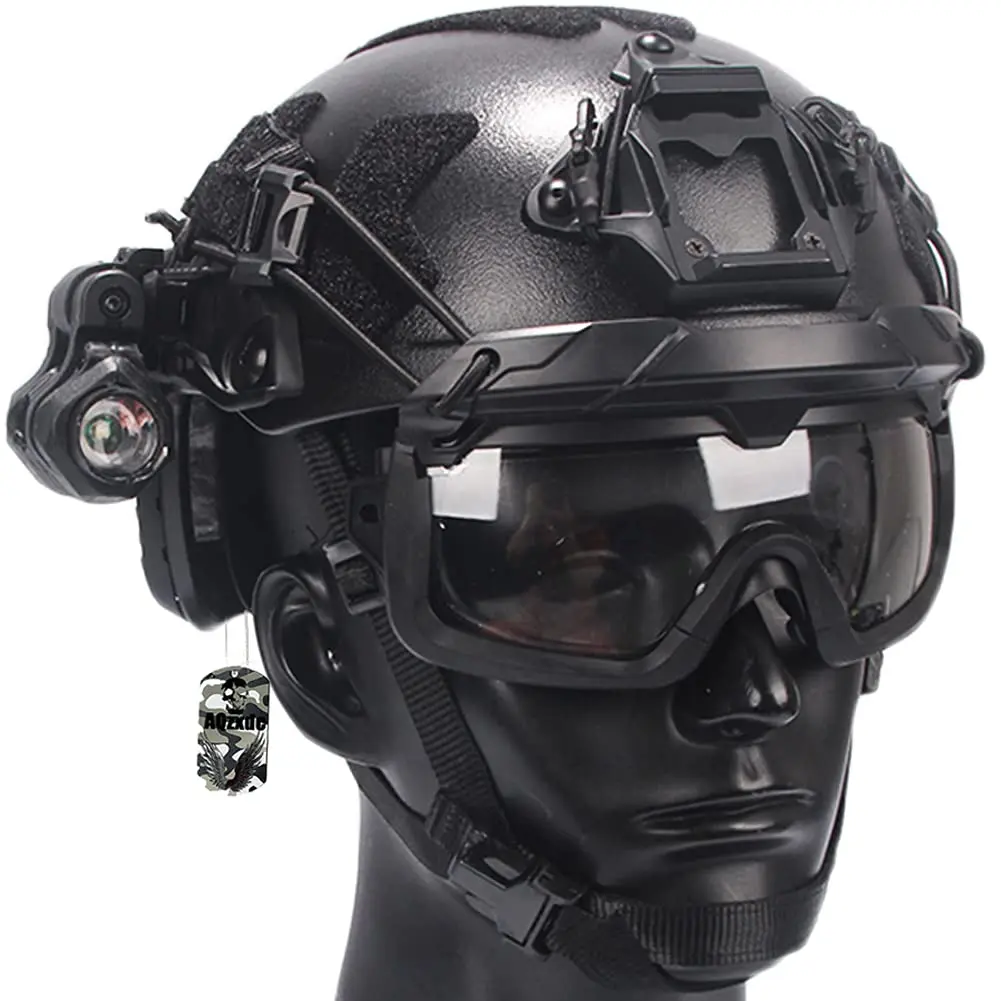 ★ Material: ABS + soporte de aleación de aluminio.2-3 veces más grueso que los cascos normales, se agrega el forro interior, 4 almohadillas de EPP ajustables y una almohadilla para el cuello.El peso es de unos 1,1 kg.(Casco protector diseñado para jugadores de paintball, el peso no es adecuado para niños menores de 14 años).