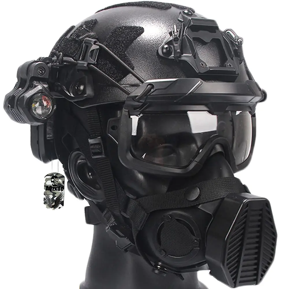 ★ Máscara de Paintball: La máscara está hecha de ABS + silicona de alta resistencia. Puede reducir algo la arena, el polvo y el olor en el campo de tiro. La máscara se puede usar sola. Tamaño ajustable. El dispositivo de visión nocturna es un modelo sin ninguna función. Cuando entrenes con tus amigos para paintball, este fantástico modelo te hará destacar inmediatamente.