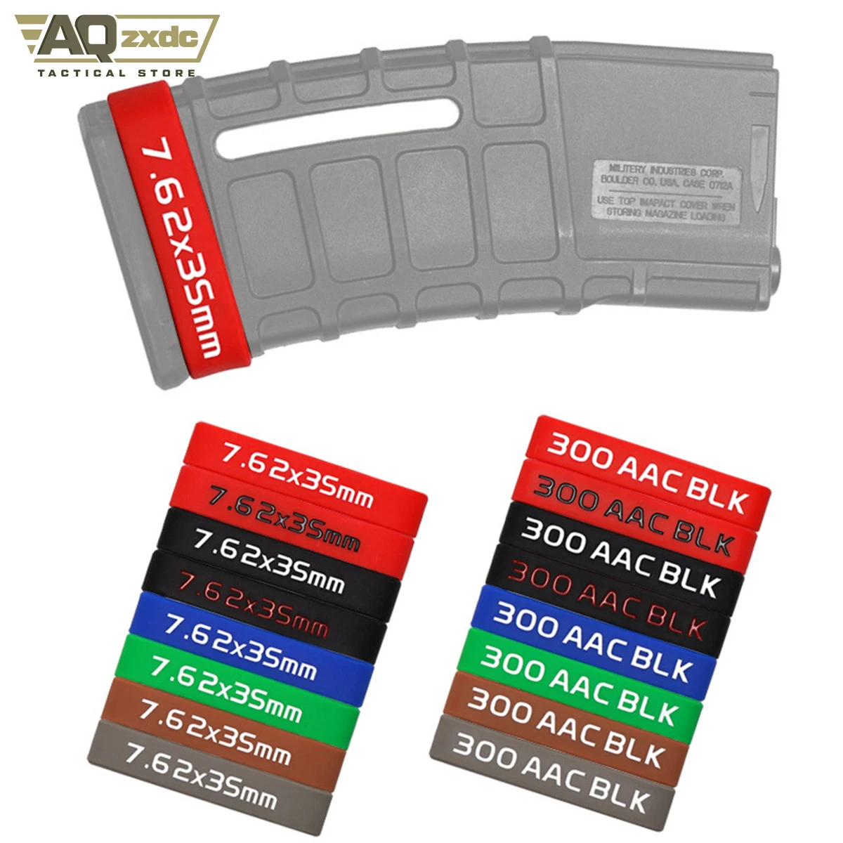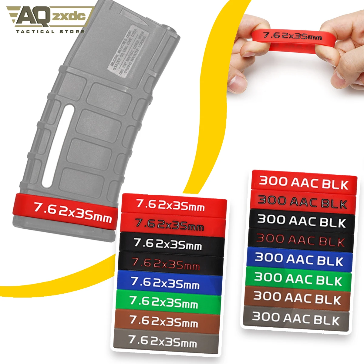 AQzxdc-banda de marcado de revistas, 5 piezas, Airsoft, anillo de goma con logotipo táctico multifunción, 7,62