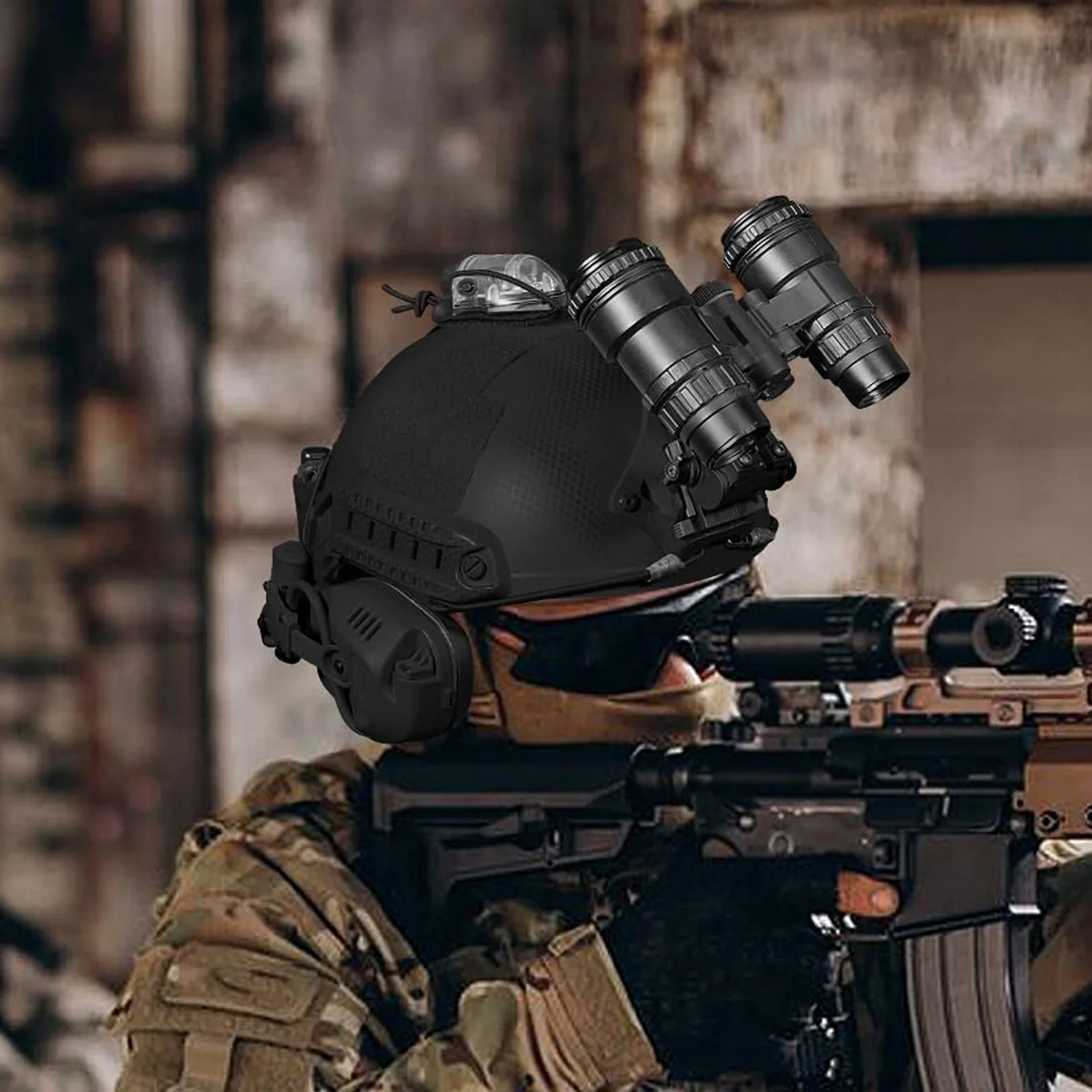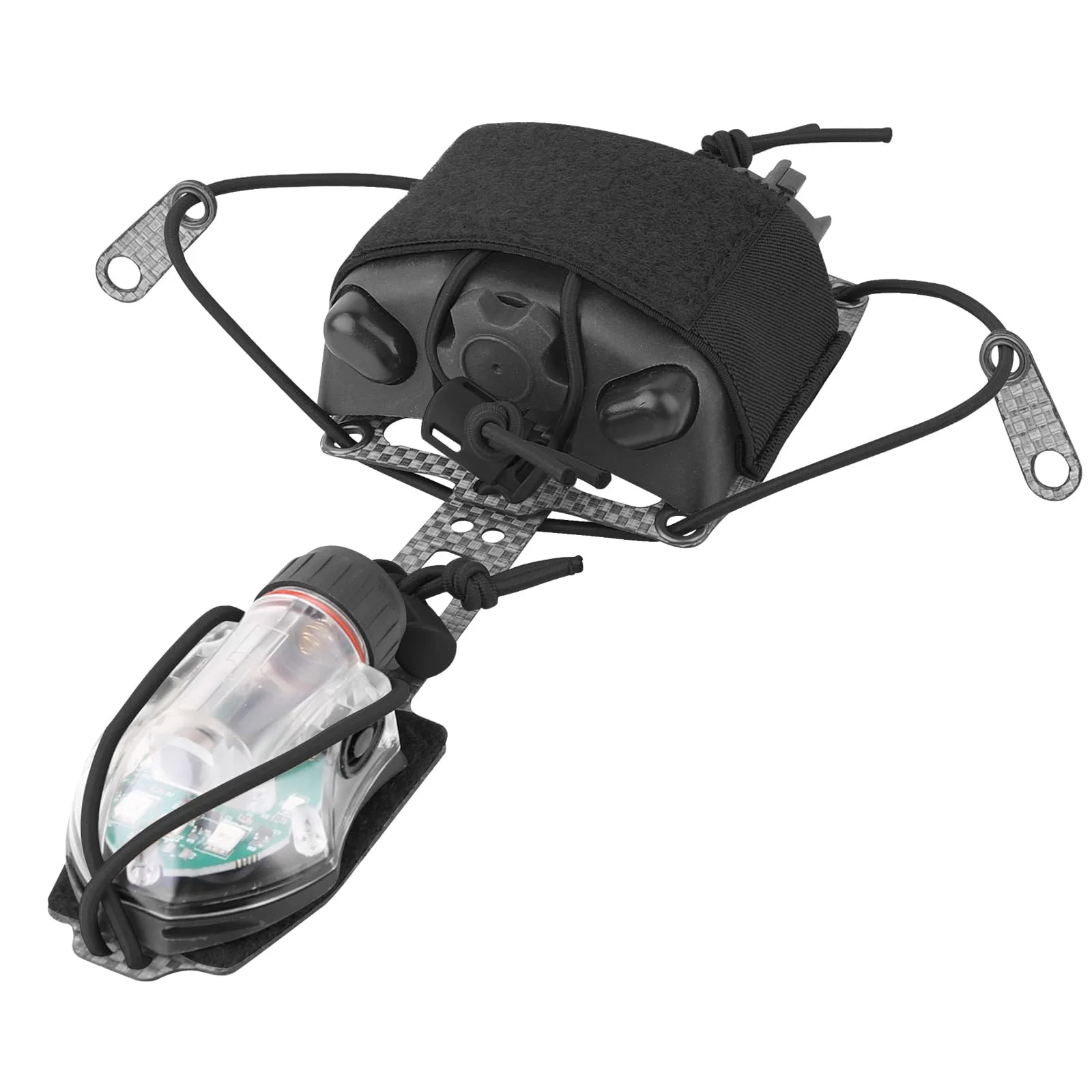 Fácil instalación: acoplado a la mayoría de los cascos de choque mediante un sistema de gancho y bucle, fácil carga y descarga, gancho y bucle fuertes, cordón de choque de resistencia, pruebas rigurosas para resistencia y durabilidad extremas.